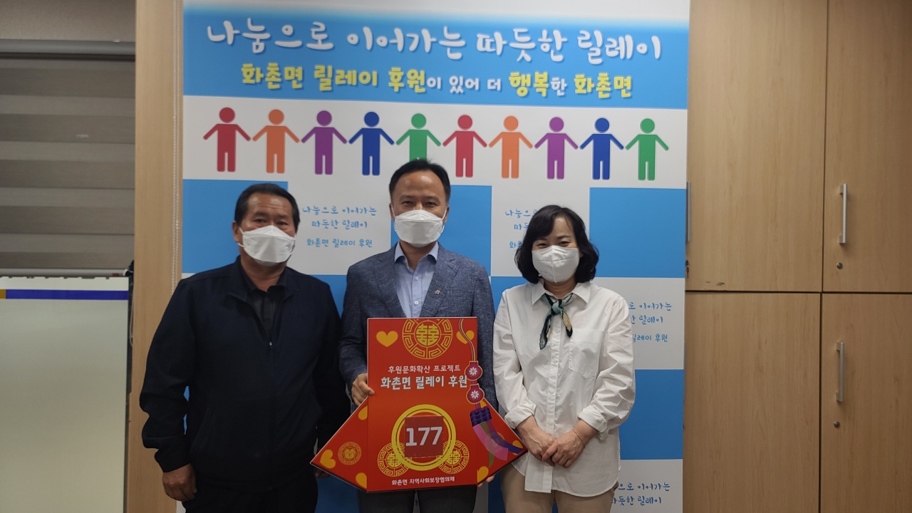 [강원사회복지신문 홍기한 기자]=홍천군 화촌면 지역사회보장협의체에서 후원문화 확산을 위해 진행하고 있는 '화촌면 릴레이 후원'에 온정의 손길이 이어지고 있다. 이청용 갈마곡7리 이장은 지난 5월 12일 화촌면 행정복지센터를 방문, 어려운 이웃을 위해 사용해 달라며 화촌면 릴레이 후원 177번째 주자로 후원금을 기탁...