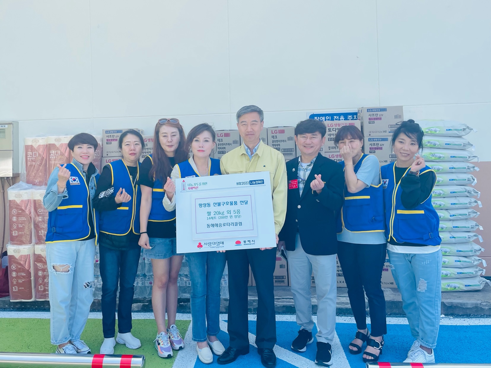 [강원사회복지신문 김종한 기자]=동해해송로타리클럽(회장 이순애)에서 지난 5월 11일 망상동행정복지센터를 방문해 산불피해 가구를 위해 쌀, 세제 등 200만원 상당의 후원물품을 지원했다.