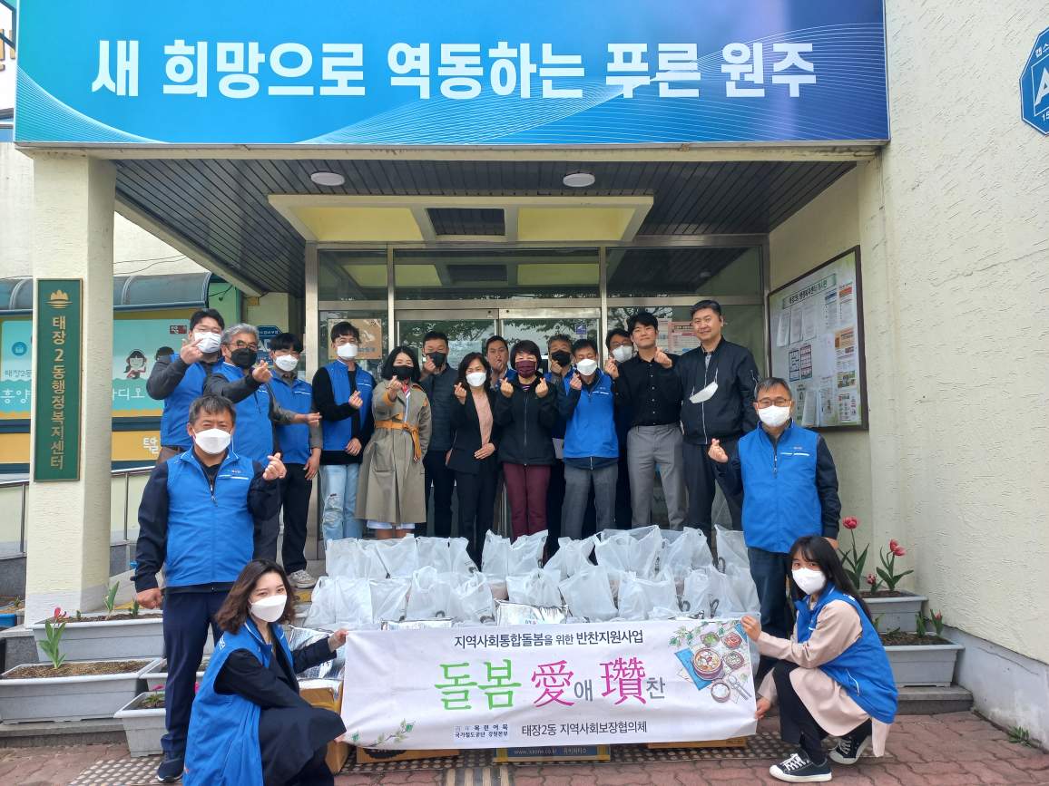 [강원사회복지신문 홍기한 기자]=원주시 태장2동 온마을 만들기 프로젝트 '우리동네 행복동네! 나눔동행'에 동참하고 있는 百年 목련어묵(대표 전진택)과 국가철도공단 강원본부(본부장 양인동)는 지난 5월 2일 정성껏 준비한 반찬을 저소득 독거노인과 장애인 등 취약계층 30가구에 전달했다. 나눔동행 5호점인 百年 목련어...
