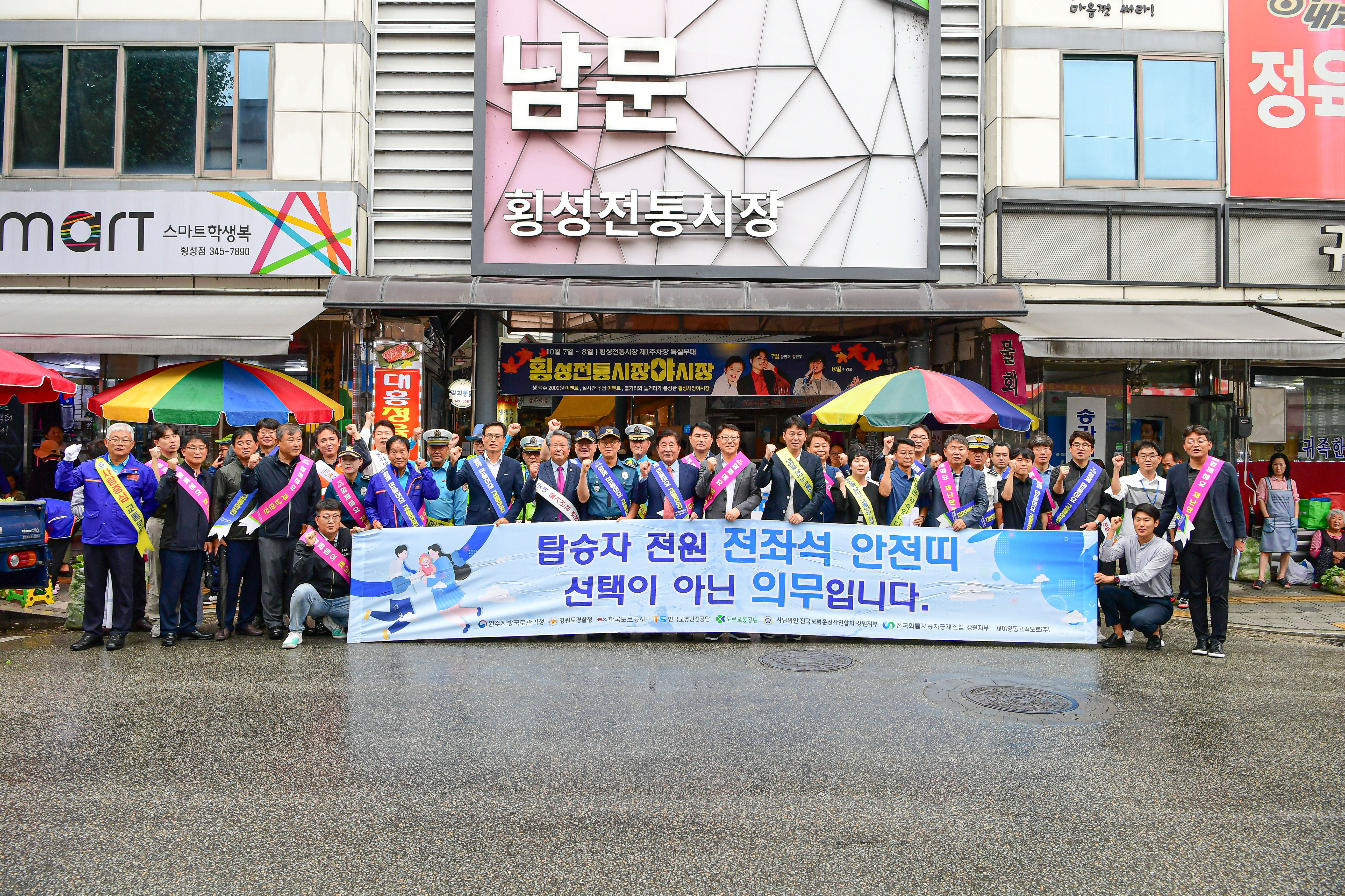 [강원사회복지신문 홍기한 기자]=횡성군(군수 김명기)은 지난 9월 26일 행락철(추석 명절)을 맞이하여 교통사고 없는 추석 명절이 될 수 있도록 유관기관과 합동으로 교통사고 예방 캠페인을 했다고 밝혔다. 횡성전통시장과 민속장에서 진행된 이날 캠페인에는 횡성군, 원주지방국토관리청, 강원경찰청, 한국도로공사, 도로교...