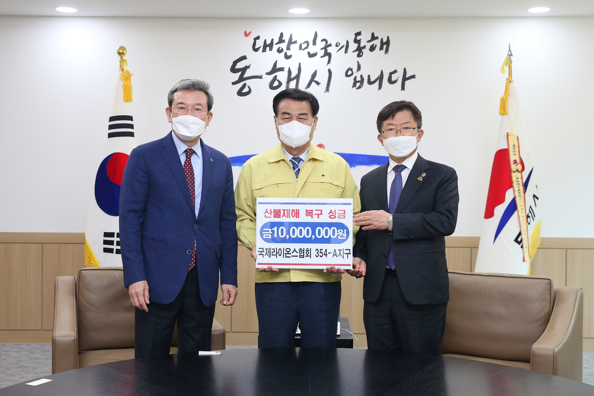 [강원사회복지신문 김종한 기자]=국제라이온스협회 354-A지구는 지난 4월 18일 동해시청을 방문해 산불 재해구호 성금 1천만원을 기탁했다.