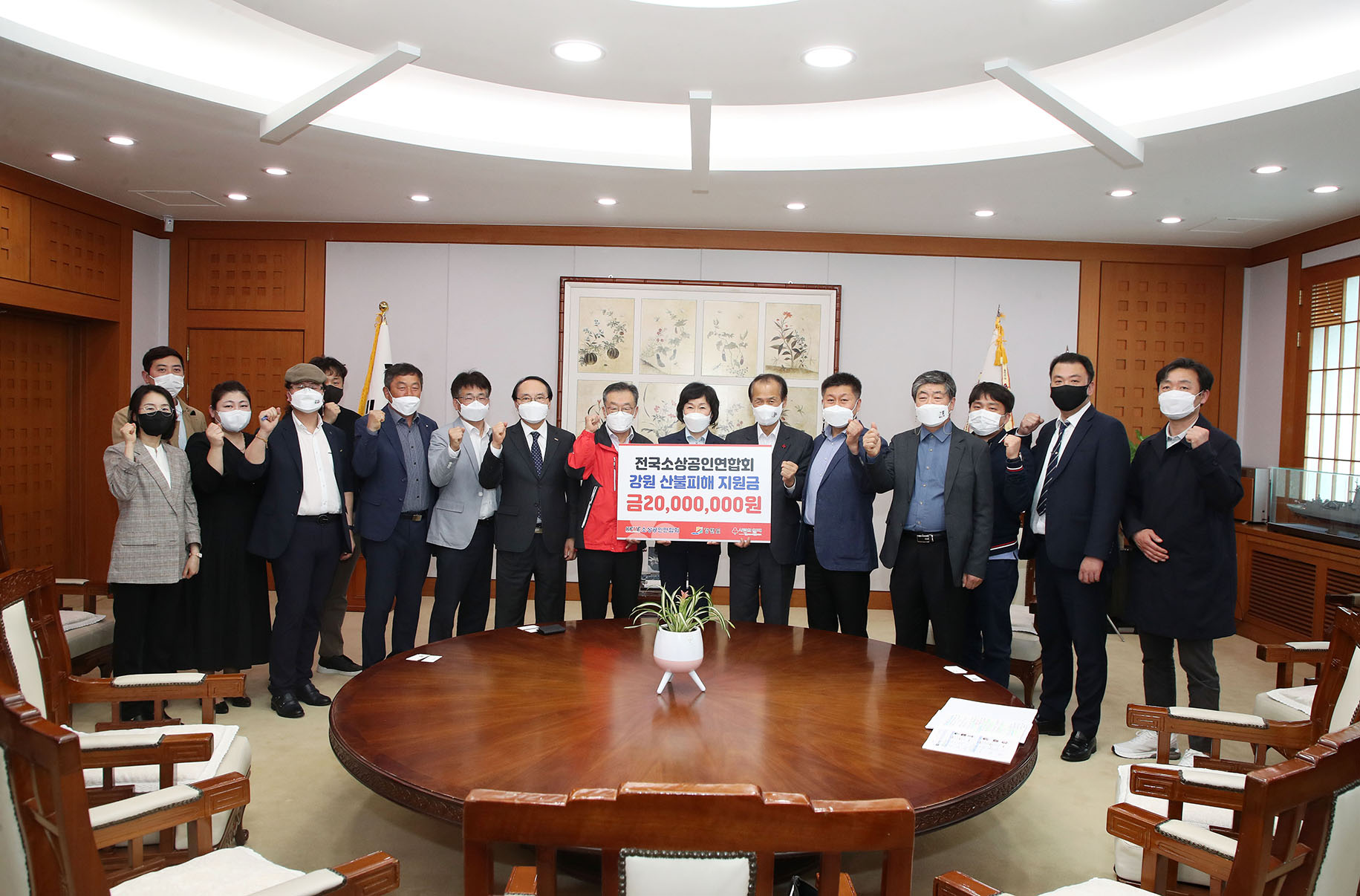 [강원사회복지신문 이정환 기자]=전국 소상공인연합회(회장 오세희)는 지난 4월 12일 오후 15시 강원도청 통상상담실에서 최문순 지사에게 2,000만원의 성금을 전달했다. 전국소상공인연합회는 '소상공인 보호 및 지원에 관한 법률'에 근거하여 지난 2014년 설립된 법정경제단체이다. 이번 전달식에는 최문순 강원도지사, 오...