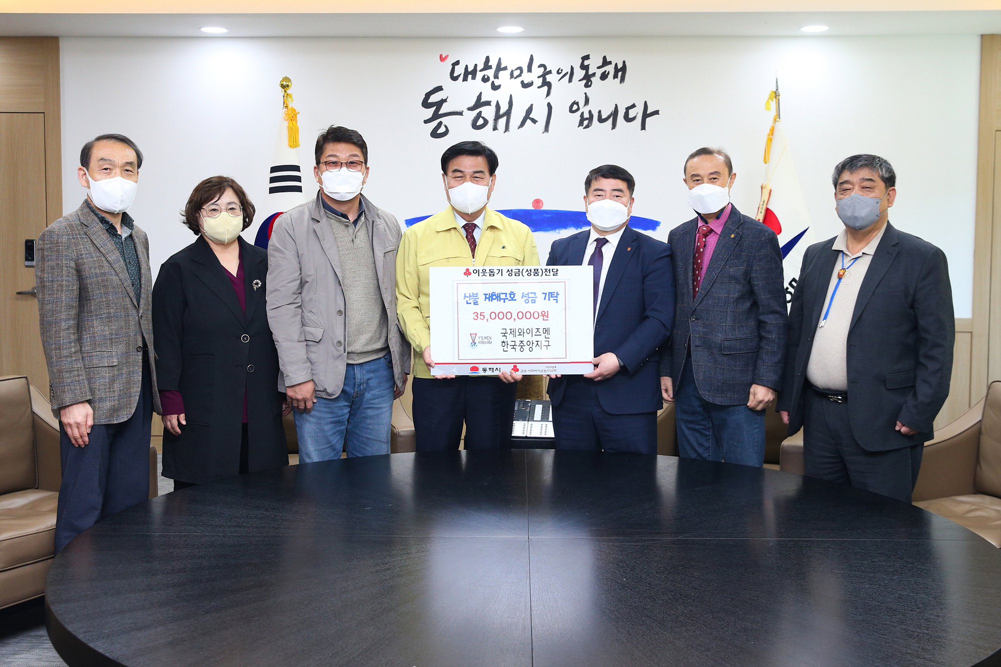 [강원사회복지신문 홍기한 기자]=국제와이즈멘 한국중앙지구(총재, 강윤모)는 지난 4월 7일 오전 11시, 대형 산불로 막대한 피해를 입은 동해시에 산불피해복구 성금 16,990,000원을 전달했다. 이날 성금 전달식에는 심규언 동해시장이 배석한 가운데, 강윤모 국제와이즈멘 한국중앙지구 총재, 박병수 한국중앙지구 사무총장...