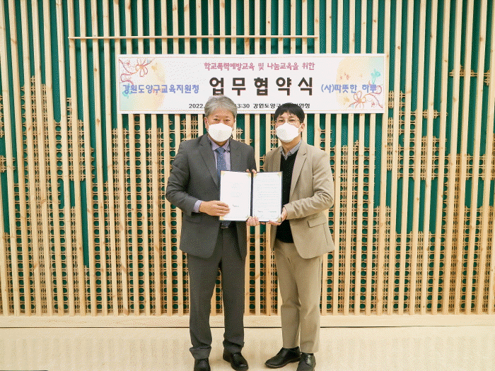 [강원사회복지신문 이정환 기자]=강원도양구교육지원청(교육장 이재학)은 지난 4월 6일(수) 양구교육지원청에서 사법법인 '따뜻한 하루'와 파트너십 협약을 체결하였다.