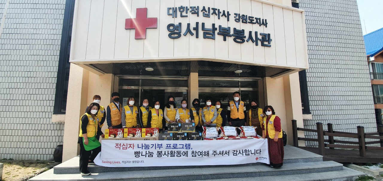 [강원사회복지신문 서은진 기자]=적십자 동악봉사회(회장 한역남)는 지난 4월 5일 원주시 학성동 장애인, 독거노인 등 저소득층 20가구에 직접 만든 빵과 백미, 두유 등 후원 물품을 직접 전달했다.