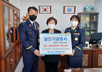 [강원사회복지신문 이정환 기자]=평창군 대화신협(이사장 오정희)은 지난 4월 5일 우리 지역을 위해 항상 애쓰고 있는 평창군 대화면 남녀의용소방대(회장 최부규, 회장 방진희)를 위해 발전기금 100만원을 전달하였다.