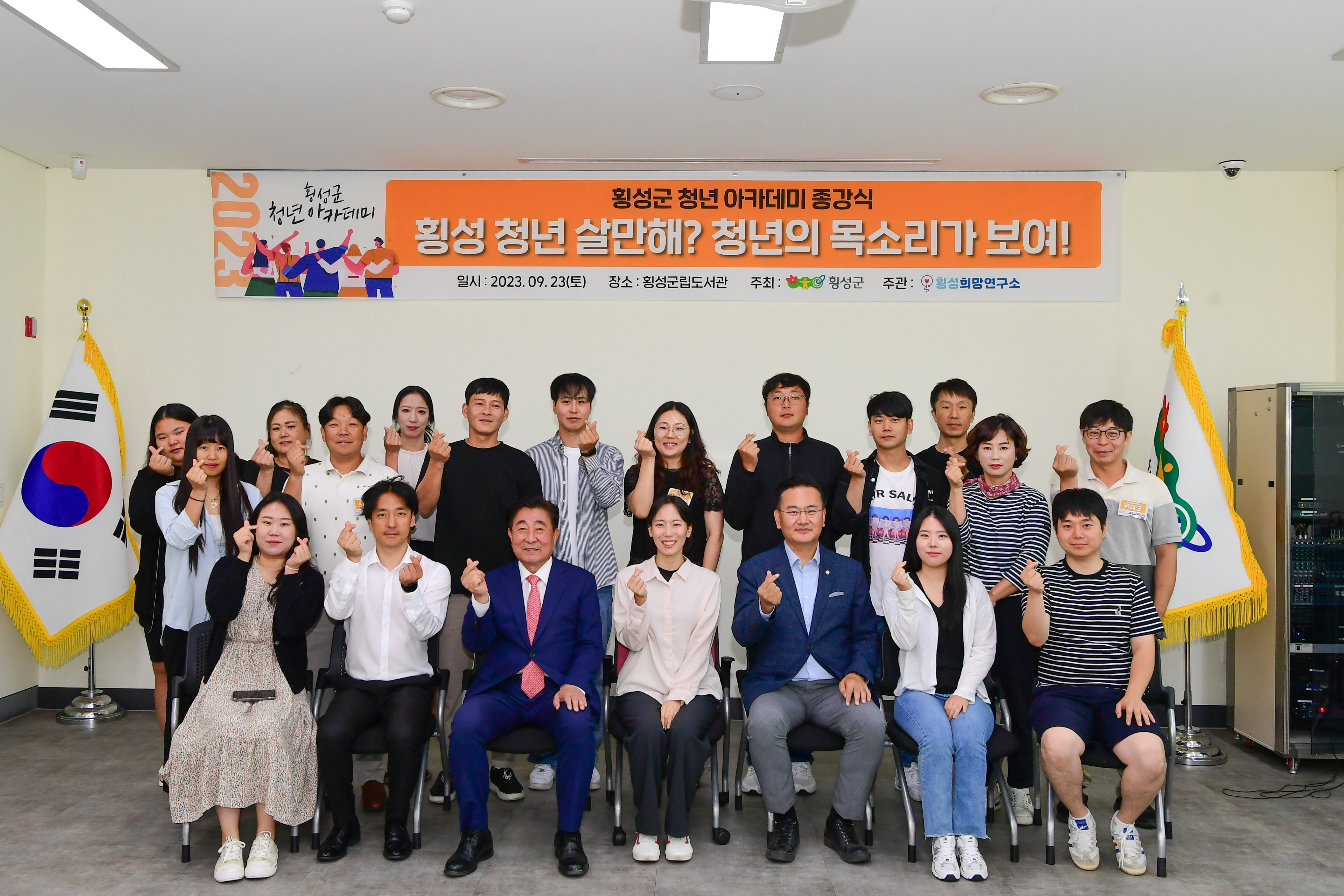 [강원사회복지신문 홍기한 기자]=횡성군은 지난 9월 23일, 횡성군립도서관에서 '2023 횡성군 청년아카데미' 수료식을 개최하였다. 이번 아카데미는 지역 청년을 양성하고, 지역 발전의 중추적인 역할을 수행할 청년 경쟁력 강화를 위해 추진되었다. 7월 개강을 시작으로 총 7회에 걸쳐 △온라인창업 △경제 △노무 △스피치 ...