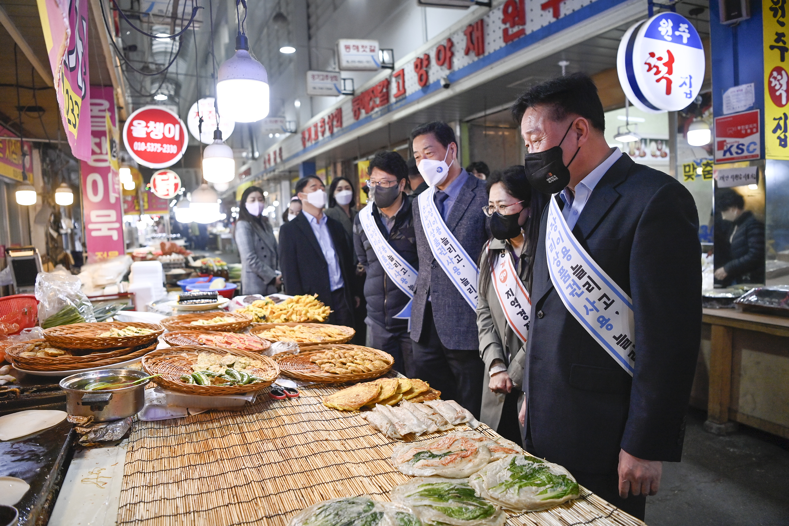 [강원사회복지신문 서은진 기자]=지난 3월 25일 중앙동 전통시장 일대에서 소비 촉진 캠페인, 장보기·식사 예정 조종용 원주시장 권한대행 등 간부 공무원 포함 시청 직원 100여 명 참여 원주시는 코로나19 장기화에 따라 경영악화를 겪고 있는 전통시장의 활성화를 위해 지난 3월 25일 오후 4시 30분 중앙동 전통시장 일대...