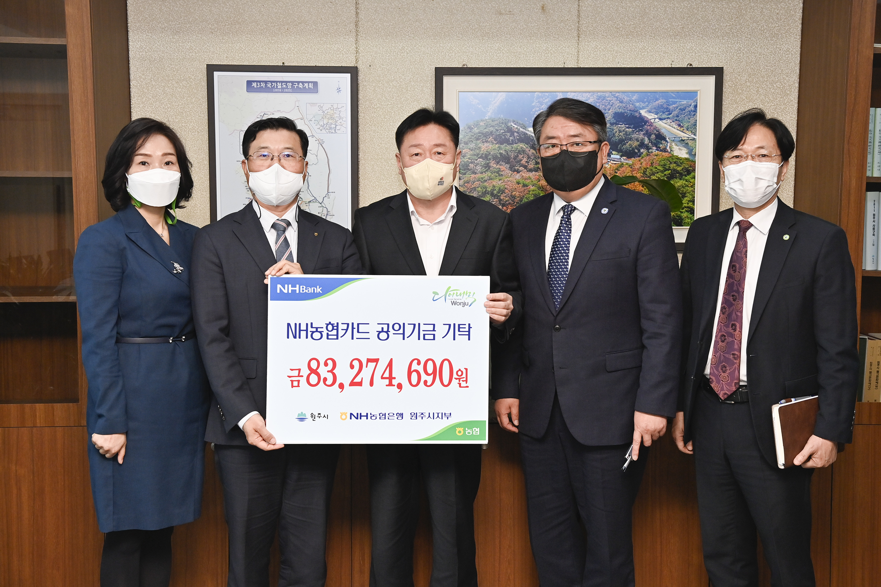 [강원사회복지신문 홍기한 기자]=3월 24일 적립금 전달식 통해 시에 약 8,300만 원 전달 원주시, 천사운동 및 사례관리 대상자 지원비로 활용 계획 원주시는 지난 3월 24일 NH농협 원주시지부(지부장 이상선)로부터 2021년 제휴카드 적립금을 전달받았다고 밝혔다. 이번 NH농협은행으로부터 전달받은 83,274,690원을 포함해 ...
