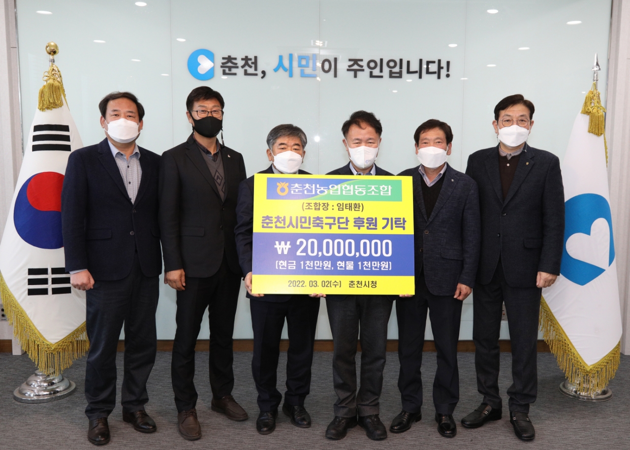 [강원사회복지신문 이정환 기자]=춘천농협(조합장:임태환)은 지난 3월 2일 접견실에서 춘천시민축구단 사회적협동조합에 2,000만원을 후원했다.