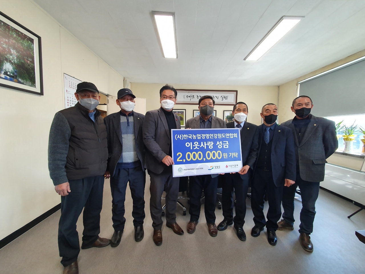[강원사회복지신문 홍기한 기자]=도내 어려운 이웃 위해 따뜻한 마음 전달 (사)한국농업경영인 강원도연합회(수석부회장 심재룡)는 지난 2월 24일 강원 도청에서, 도내 어려운 이웃에게 따뜻한 온정의 손길을 전하고자 이웃사랑 성금 200만원을 강원도사회복지공동모금회에 전달했다. 성금 전달식에는 김복진 농정국장, 주남...