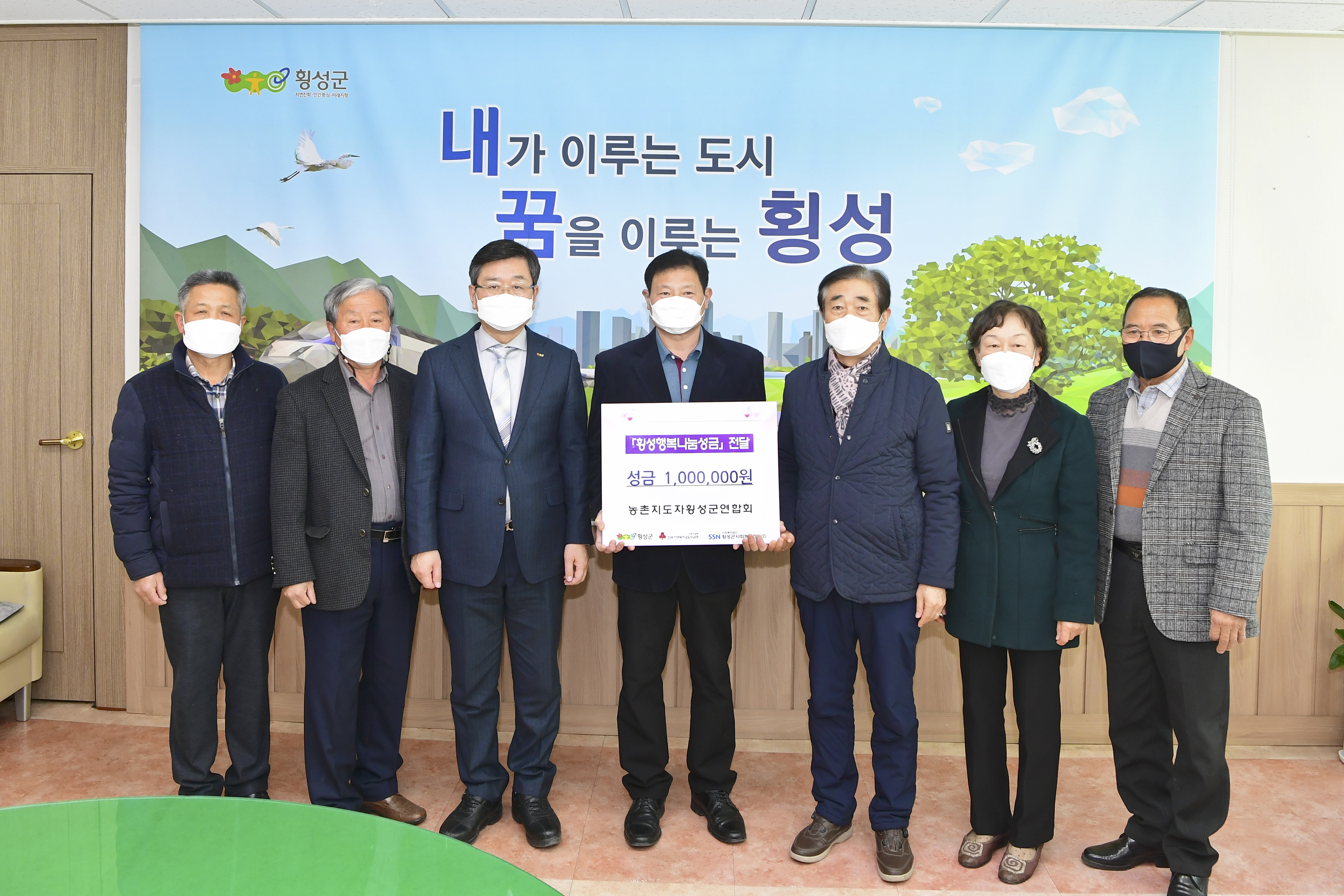 [강원사회복지신문 서은진 기자]=농촌지도자 횡성군연합회(회장 임원규)는 지난 2월 18일 오전 11시, 군수 집무실을 방문하여 성금 1백만원을 '횡성행복나눔성금'에 기탁했다. 이날 전달식에는 농촌지도자 횡성군연합에서 회장 임원규, 수석부회장 조남국, 정책부회장 원두식, 사업부회장 최학선, 여부회장 임종순이 참석하였...