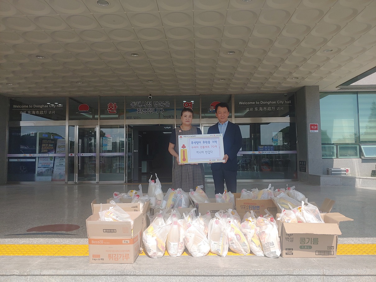 [강원사회복지신문 김종한 기자]=끼니야 반갑다(사장 김태선)은 지난 9월 19일 동해시(시장 심규언)에 독거노인 및 취약계층 세대가구가 훈훈한 추석명절을 보낼수 있도록, 꾸러미 세트 70개(100만원상당)을 기탁하였다. 시는 기탁받은 꾸러미 세트에 대해 동 행정복지센터 찾아가는 보건복지팀을 통해 독거노인 세대 및 취약...