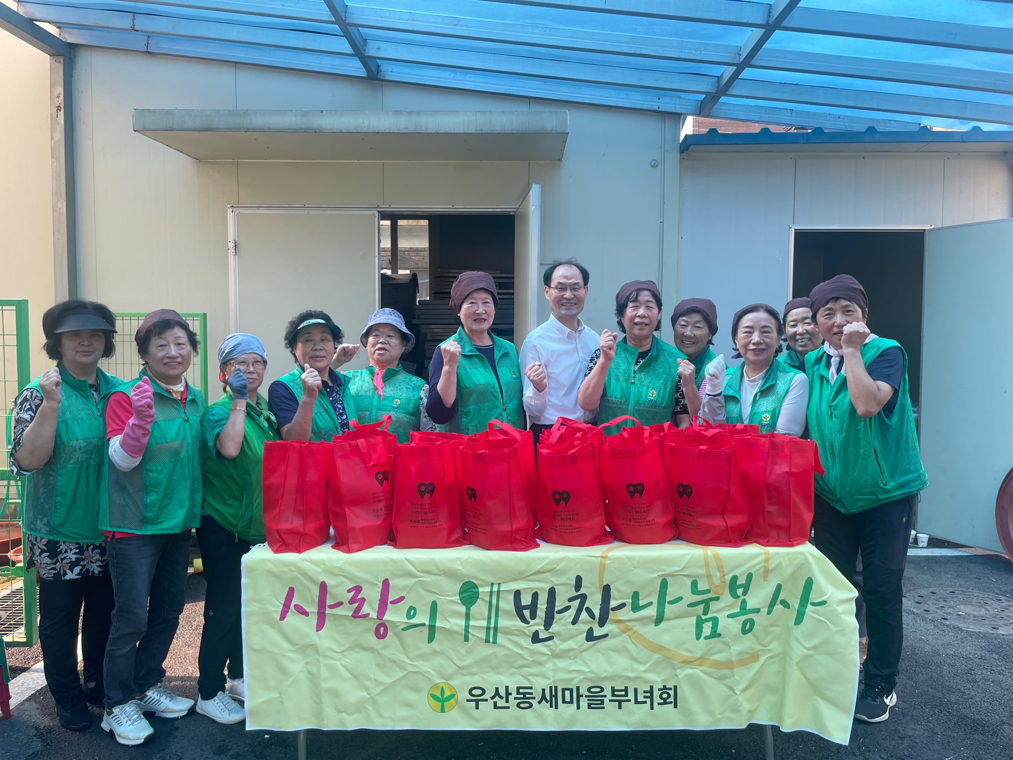 [강원사회복지신문 이정환 기자]=원주시 우산동 새마을부녀회(회장 이현숙)는 지난 9월 19일(화) 우산동행정복지센터에서 '추석맞이 송편 및 사랑의 반찬 나눔 봉사활동'을 펼쳤다. 이날 행사에 참여한 새마을부녀회원 11명은 송편과 불고기, 물김치, 고춧잎무침, 메밀전 등 명절 음식을 마련하여 관내 저소득층 15가구에 전...
