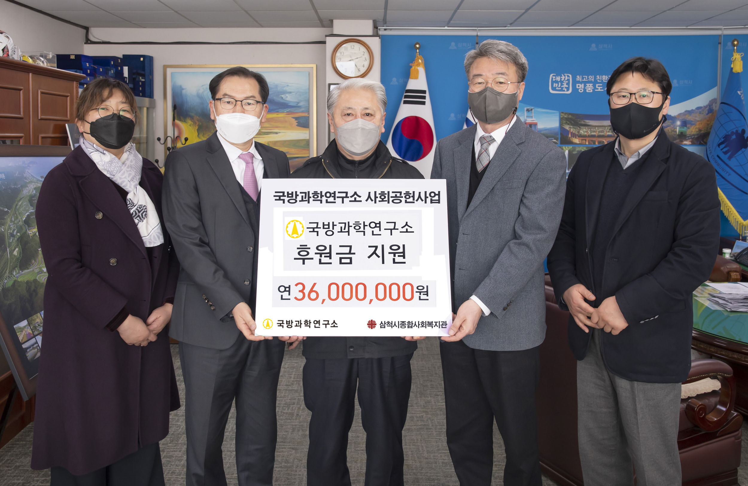 [강원사회복지신문 서은진 기자]=국방과학연구소가 지난 2월 16일 삼척시장 집무실에서 사회공헌사업의 일환으로 후원금 3600만원을 삼척시종합사회복지관에 전달했다. 전달식에는 국방시험연구원장 강설묵, 삼척해양기술연구센터장 손권, 삼척시종합사회복지관장 김진상 등이 참석했다. 후원금은 향후 관내 도움이 필요한 아...