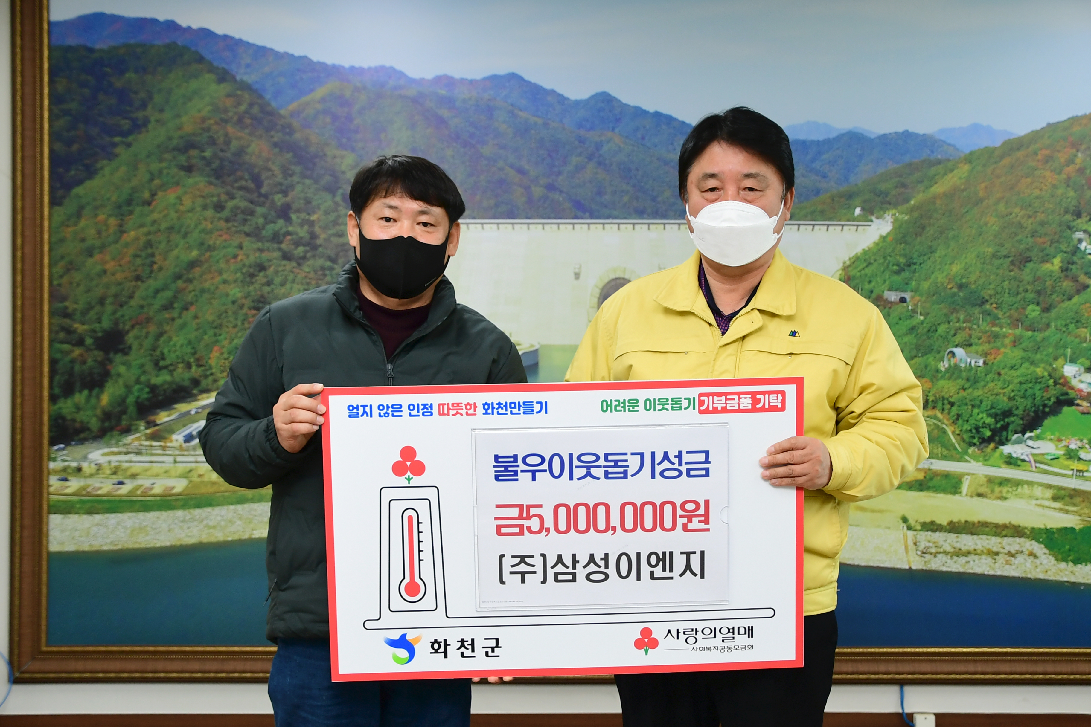 [강원사회복지신문 이정환 기자]=라병학 삼성이엔지 대표는 지난 2월 16일 최문순 화천군수를 방문해 이웃돕기 성금 500만원을 기탁했다.
