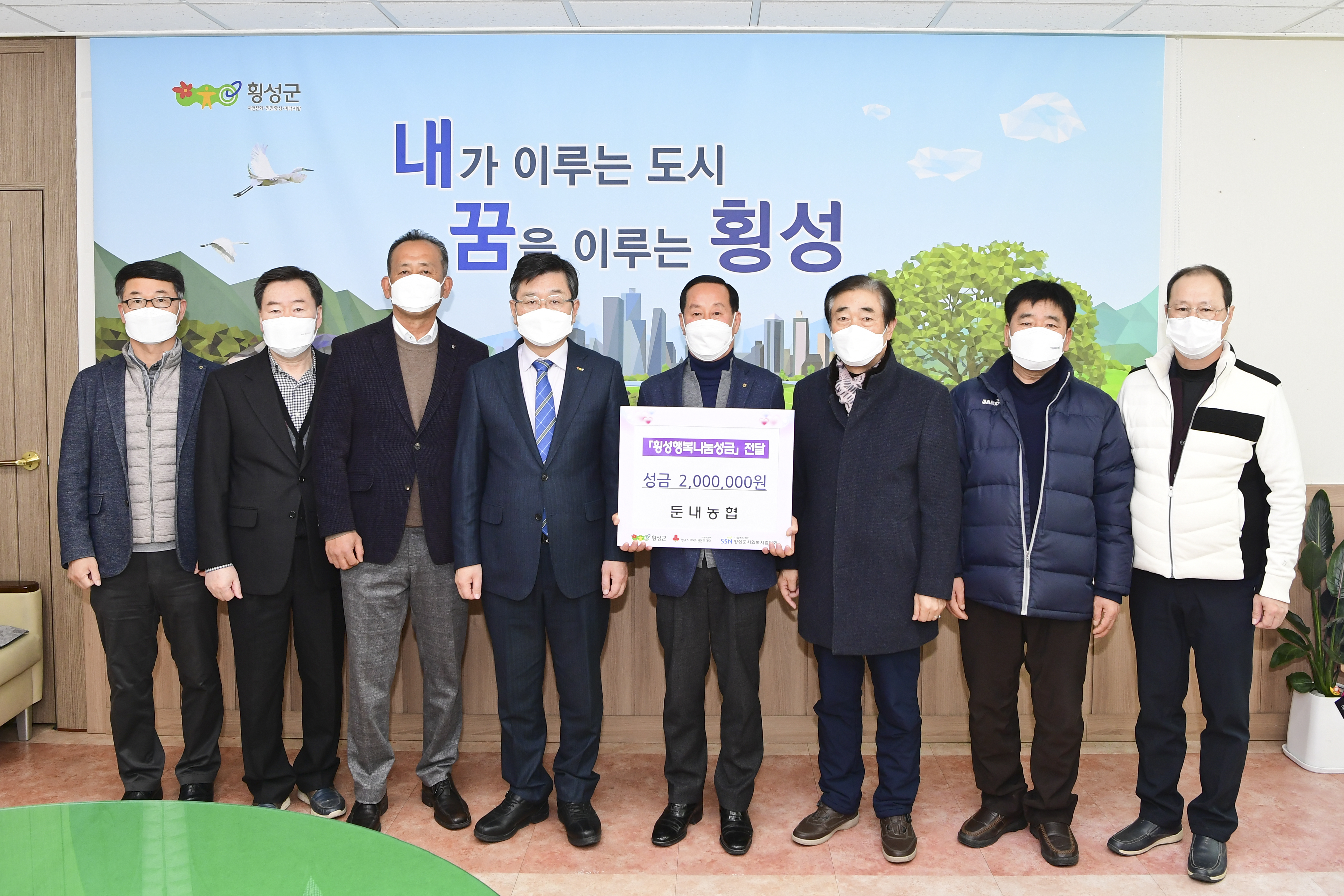 [강원사회복지신문 서은진 기자]=횡성 둔내농협(조합장 오세복)은 지난 2월 15일 오전 10시, 군수집무실을 방문하여 '횡성행복나눔성금'에 성금 200만원을 기탁했다. 이날 전달식에는 둔내농협 조합장 오세복, 토마토 공선회장 김건호 등이 참석하였으며, 성금은 둔내농협 내 토마토 공선회가 지난 2월 4일 전국생산조직단체...