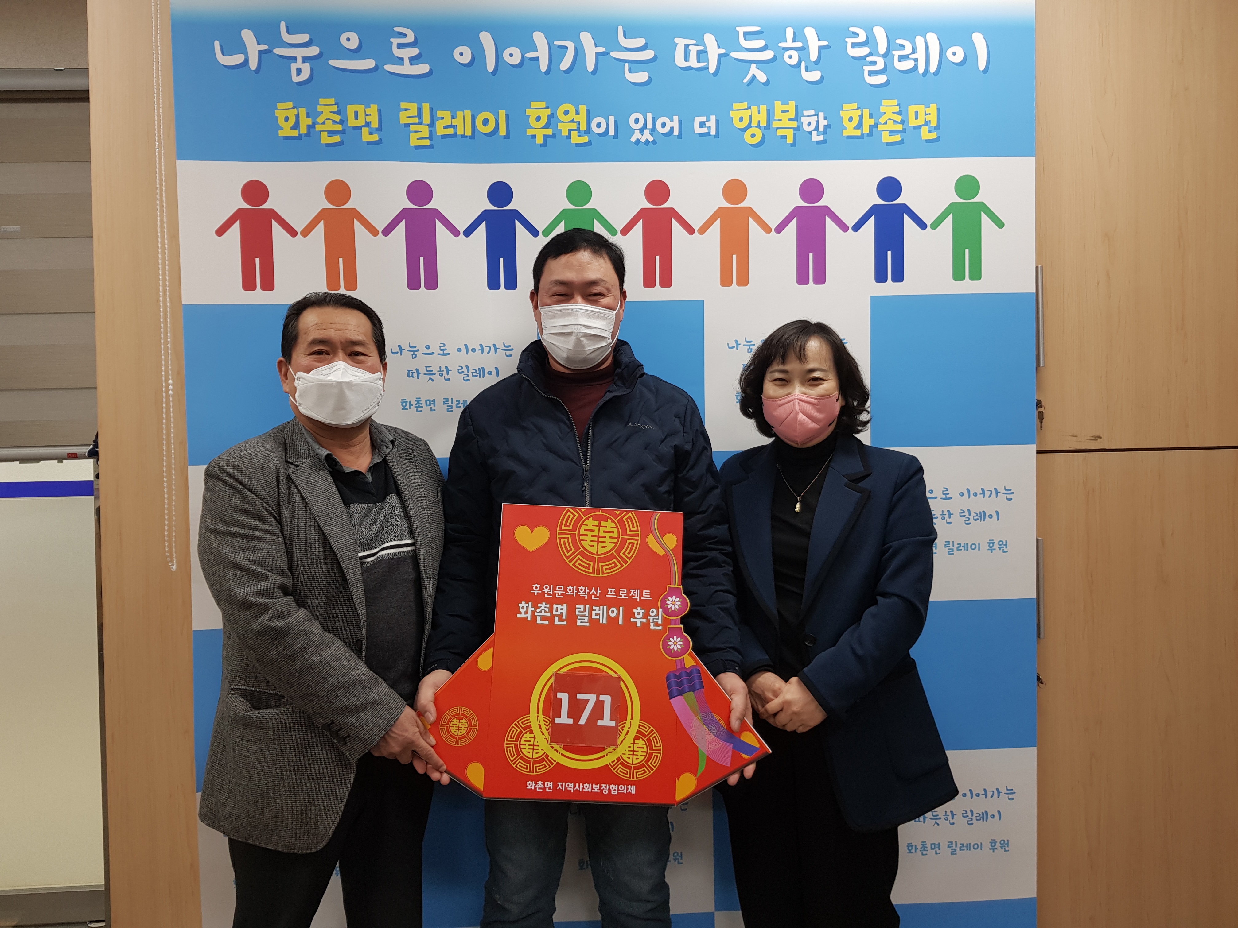 [강원사회복지신문 서은진 기자]=홍천군 화촌면 지역사회보장협의체(민간위원장 강은수, 공공위원장 허은숙)에서 후원문화 확산을 위해 진행하고 있는 화촌면 릴레이 후원’에 강명수 주음치리 이장이 후원자로 나서며 나눔 문화 확산에 동참했다. 강명수 주음치리 이장이 지난 2월 7일(월) 오전 10시 30분 화촌면 행정복지센...