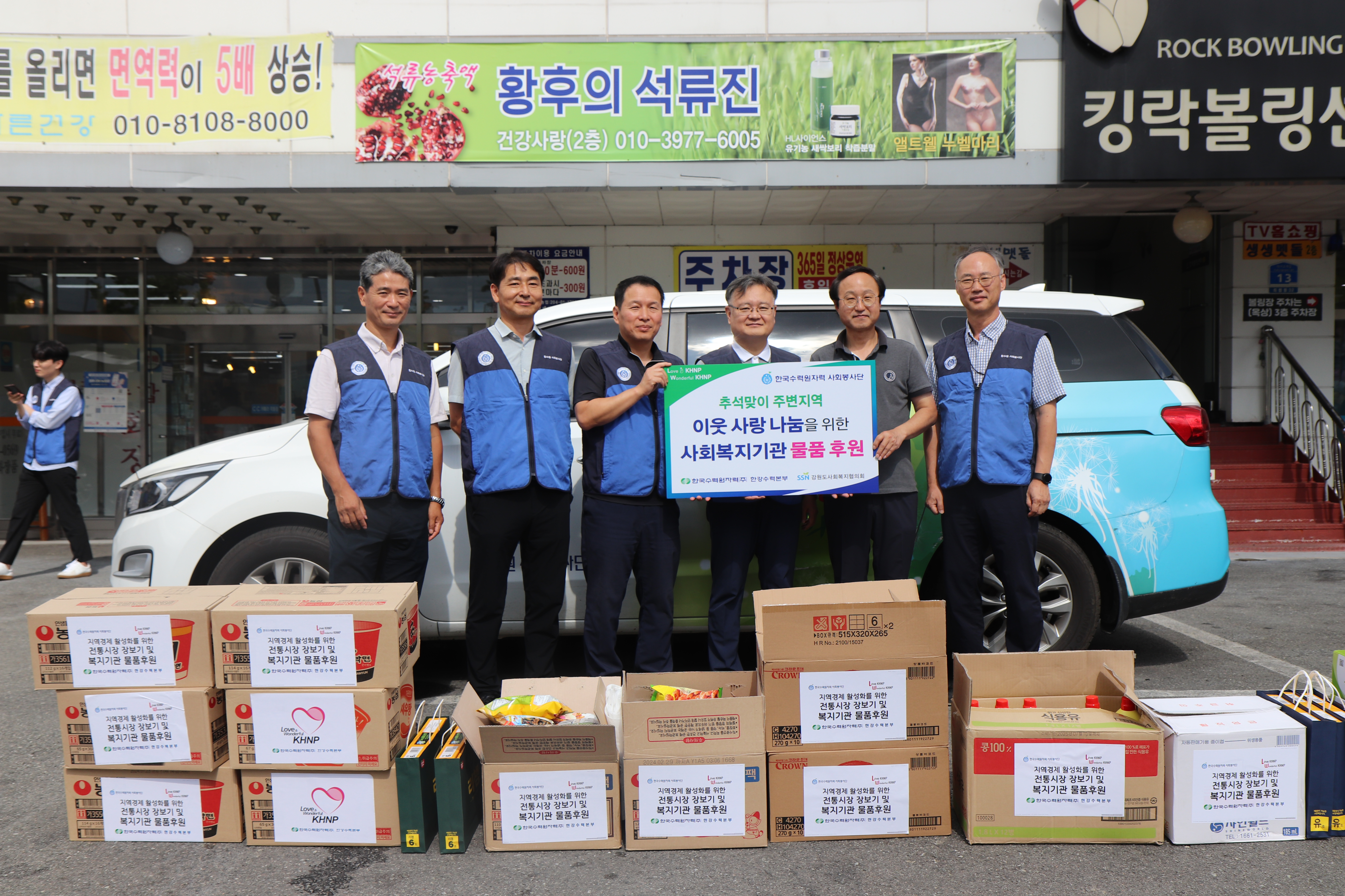 [강원사회복지신문 홍기한 기자]=한국수력원자력(주)한강수력본부(본부장 김창균)는 지난 9월 18일 춘천제일종합시장에서 추석위문품(생필품 세트 / 3,000천원 상당)를 강원특별자치도사회공헌정보센터(센터장 홍기종)를 통해 기탁하여 전달식을 가졌다. 이날 한국수력원자력(주)한강수력본부에서 기탁한 추석위문품(생필품 ...