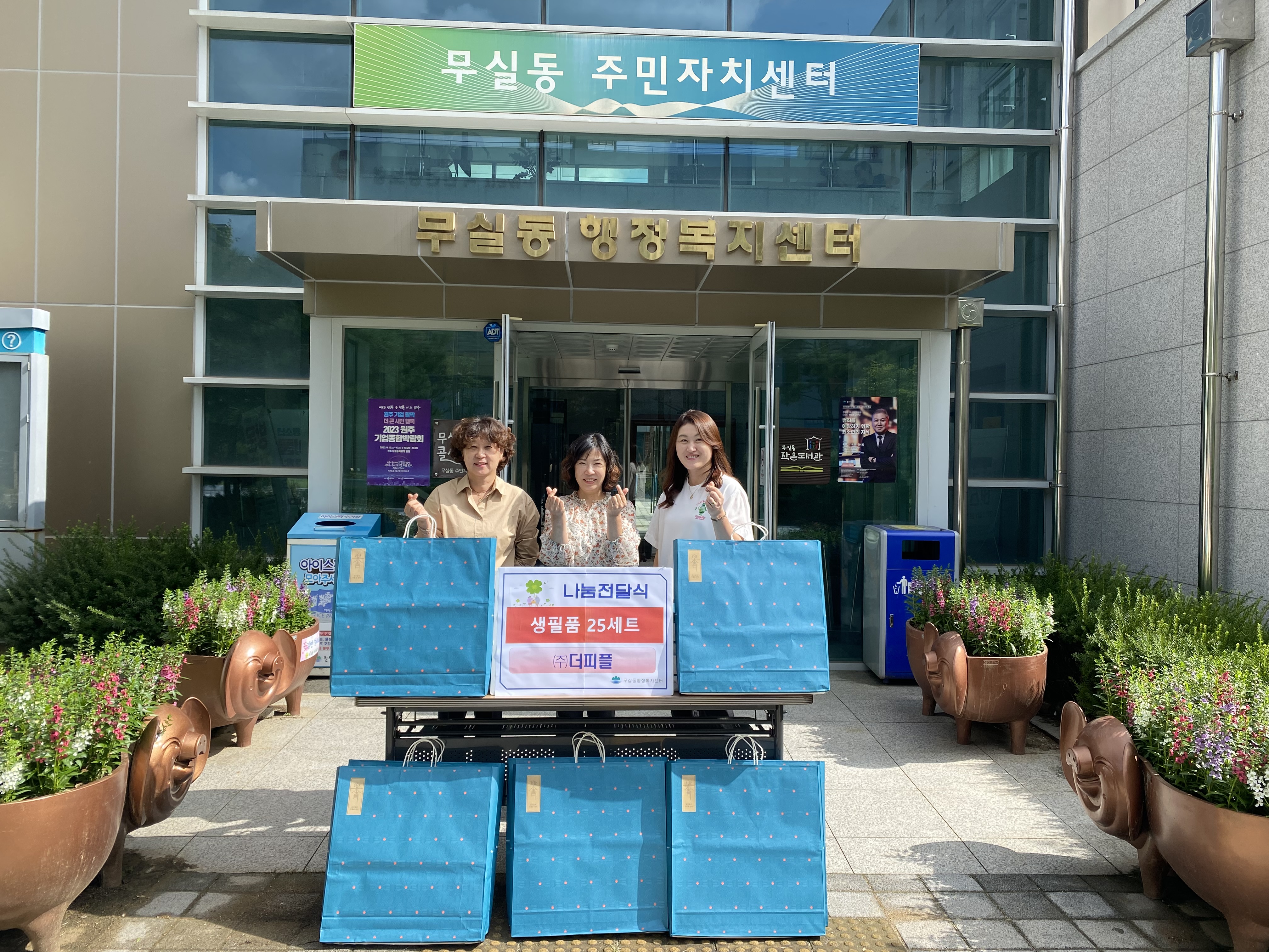 [강원사회복지신문 최재석 기자]=(주)더피플(대표 최경순)에서는 지난 9월 18일 원주시 무실동행정복지센터를 찾아 관내 어려운 이웃에게 전해 달라며 80만 원 상당의 후원 물품을 기탁하였다. 후원품은 생필품 세트로 관내 소외계층과 저소득 주민 25가구에게 전달될 예정이다.