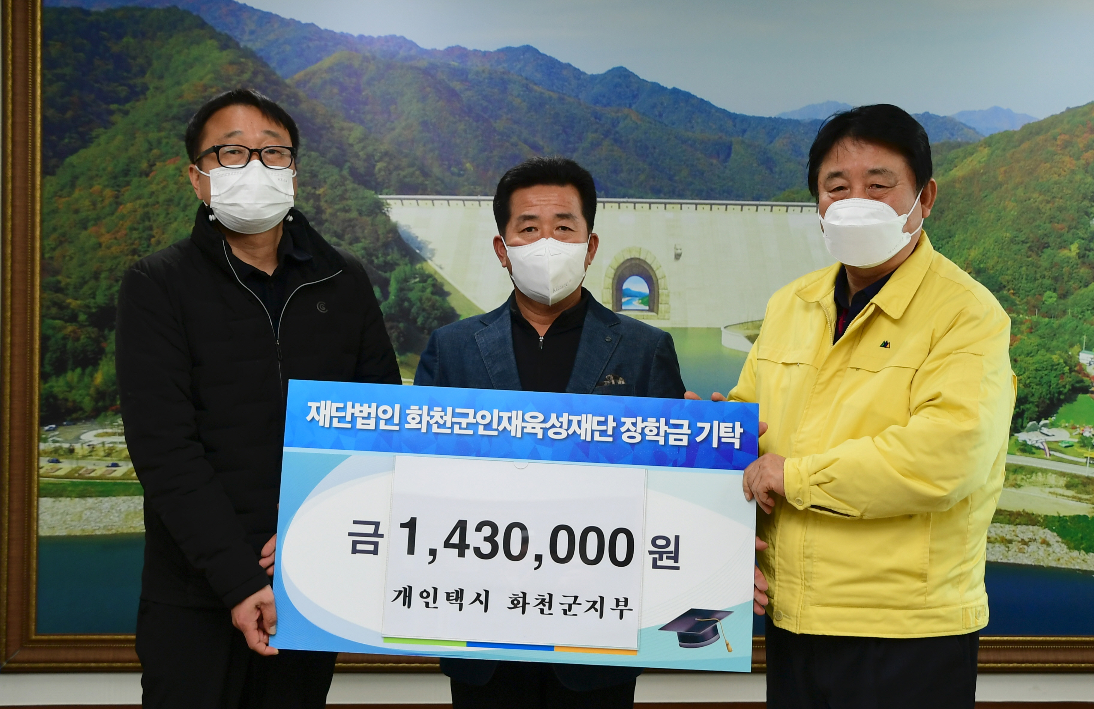 [강원사회복지신문 이정환 기자]=개인택시 화천군지부(지부장:심규태)는 지난 2월 3일 최문순 화천군 인재육성재단 이사장을 방문해 장학금 143만원을 기탁했다.
