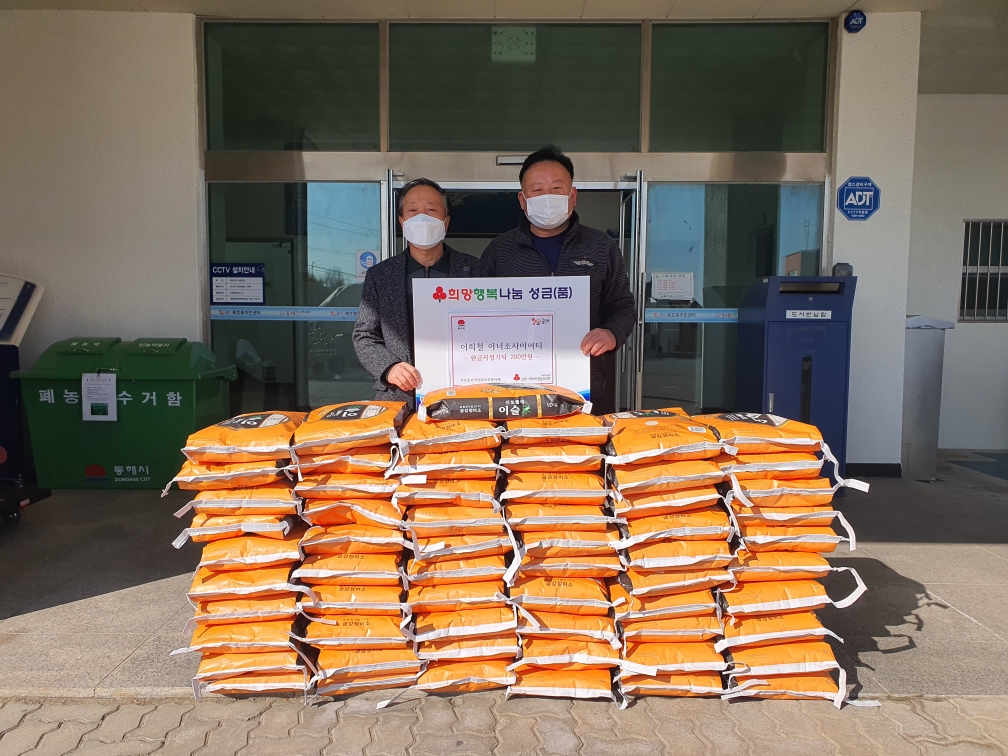 [강원사회복지신문 김종한 기자]=동해시 4번째 아너소사이어티 회원인 (주)동해우리마트 이희철 대표가 강원공동모금회를 통해 묵호동지역사회보장협의체에 현금 200만원을지정 기탁했다. 묵호동지역사회보장협의체는 기탁된 성금으로 쌀 10kg 52포를 구입해 묵호동 저소득가구에 전달할 예정이다.