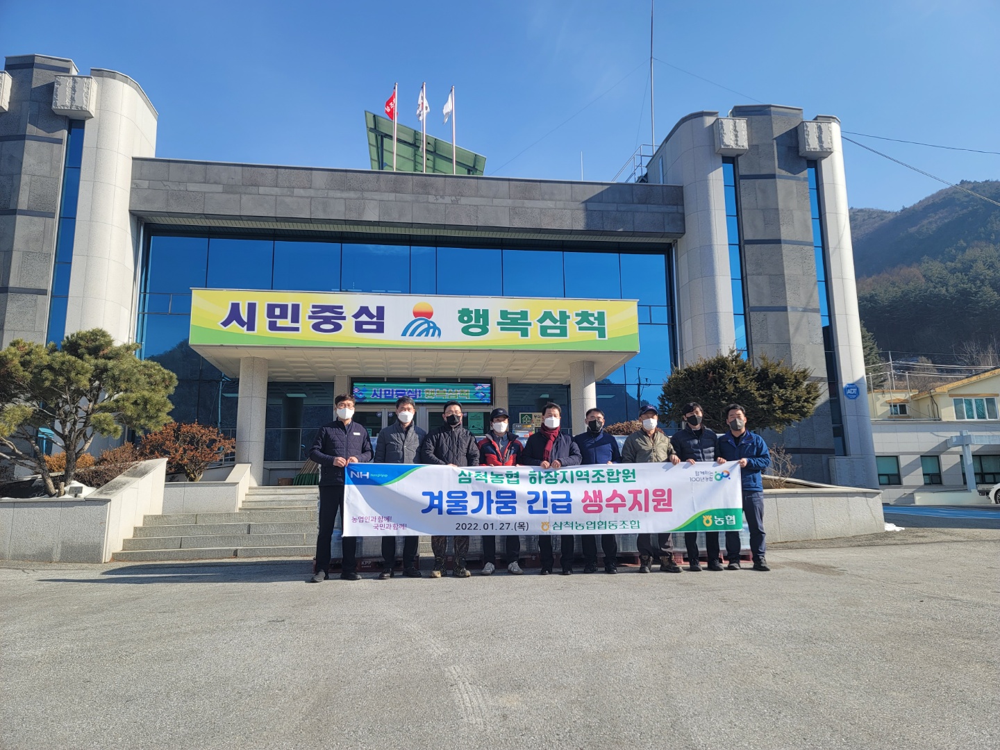 [강원사회복지신문 이정환 기자]=삼척농협(조합장 이규정)에서는 지난 1월 27일(목) 겨울철 지속되는 가뭄과 한파로 식수 공급에 어려움을 겪고 있는 하장면 지역에 1백만원 상당의 생수 2,064병을 전달하였으며, 앞으로도 지역 주민들과 더불어 살아가고자 하는 실천 의지를 밝혔다.