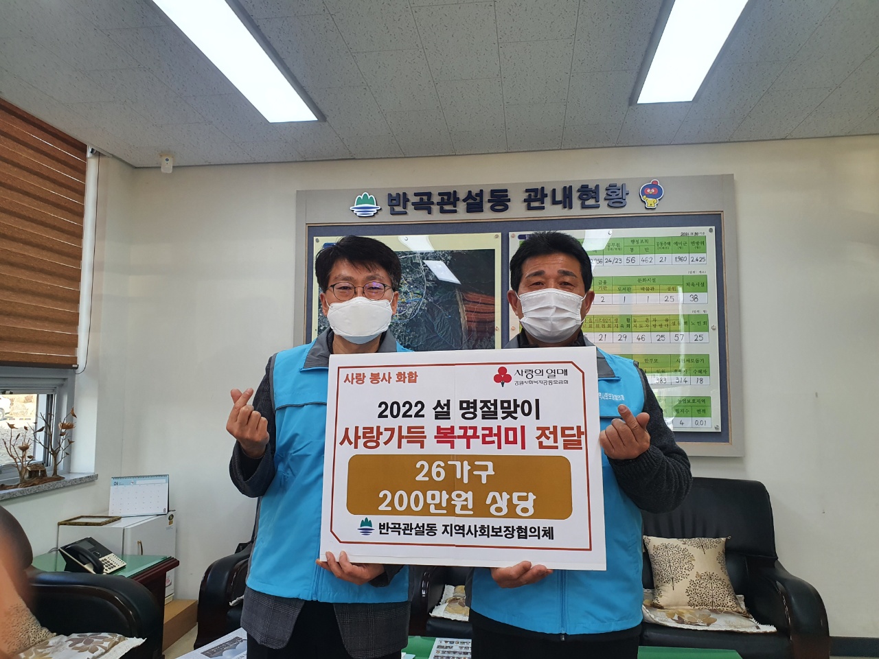 [강원사회복지신문 홍기한 기자]=원주시 반곡관설동 지역사회보장협의체(위원장 강동철)는 지난 1월 27일 설 명절을 맞아 행정복지센터를 방문해 200만 원 상당의 '사랑 가득 복 꾸러미'를 전달했다. 쌀, 라면, 참치, 견과류 등으로 구성된 '사랑 가득 복 꾸러미'는 지역사회보장협의체 위원들이 모금한 성금과 지역 기관에서...
