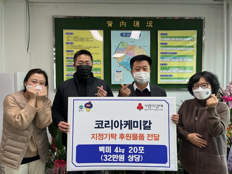 [강원사회복지신문 서은진 기자]=원주시 소초면의 코리아케미칼(대표 김민우)은 지난 1월 26일 소초면 행정복지센터를 방문해 32만 원 상당의 토토미(4kg) 20포를 전달했다. 황덕윤 이사는 "설 명절을 맞아 소외되고 어려운 이웃들에게 조금이나마 도움이 되길 바란다."라고 말했다.