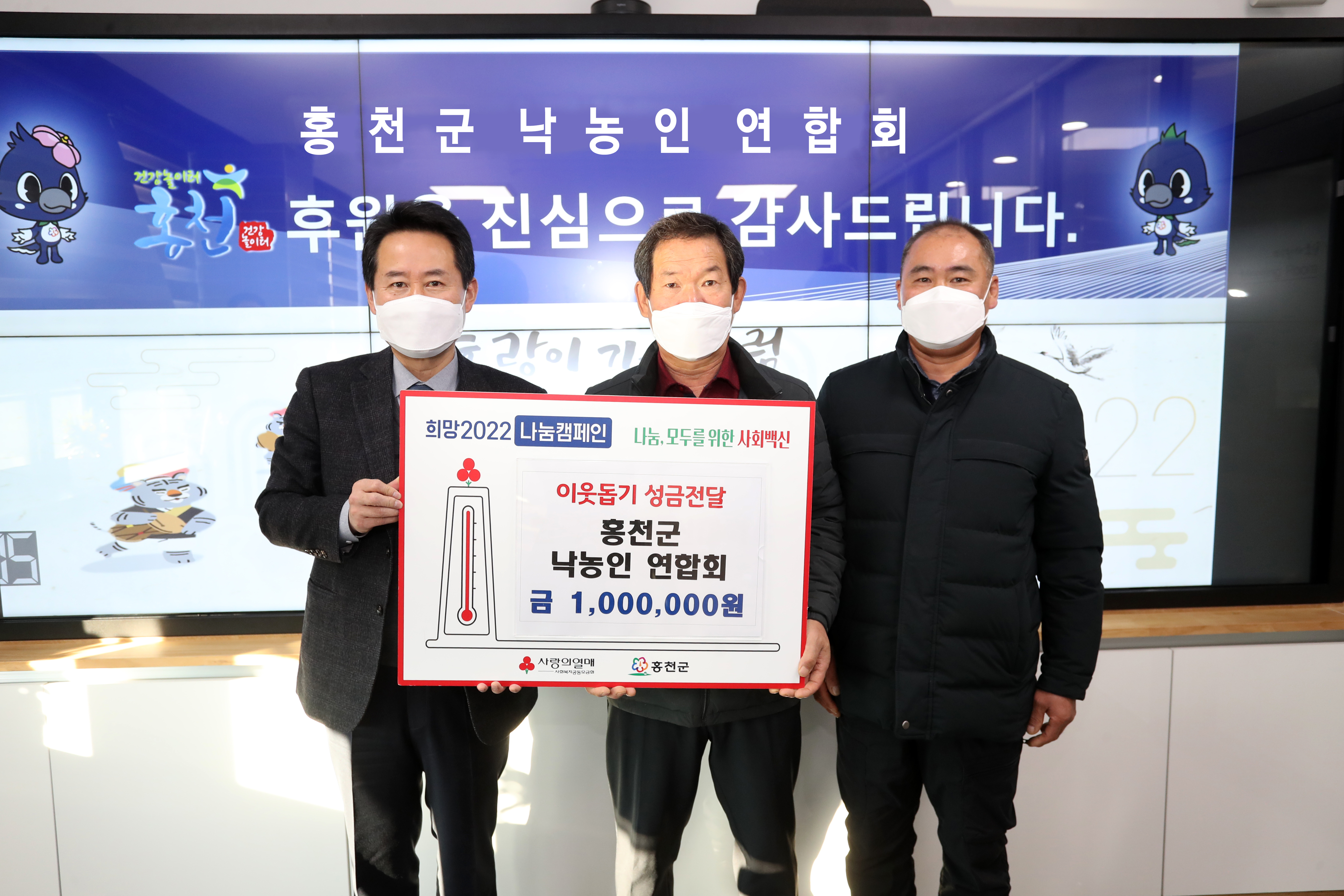 [강원사회복지신문 홍기한 기자]=홍천군 낙농인 협의회(회장 반종명)는 지난 1월 13일 홍천군청을 방문, '희망 2022 나눔 캠페인' 이웃돕기 성금 100만원을 기탁했다.
