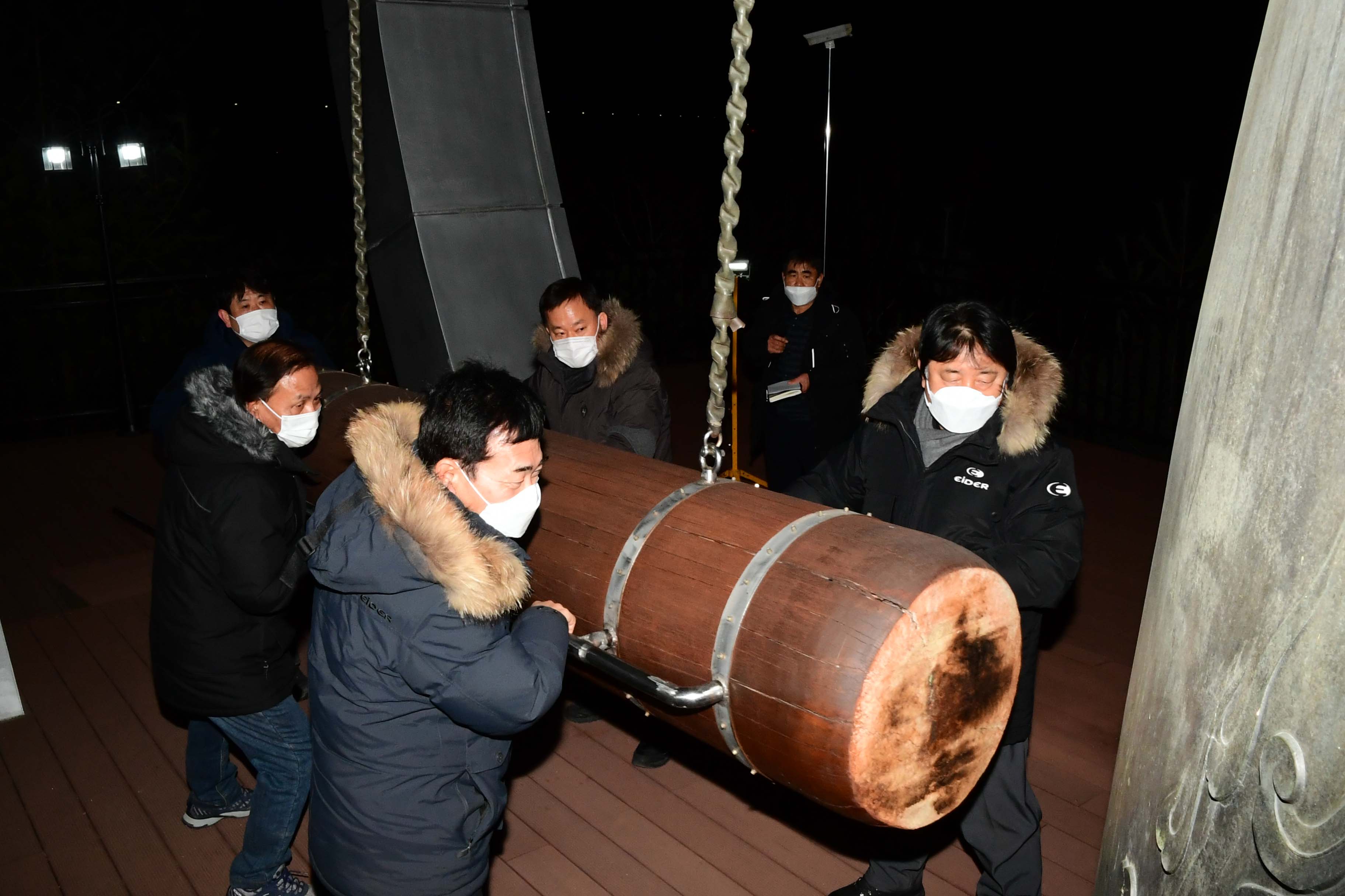 [강원사회복지신문 유경수 기자]=화천군은 지난 1월 1일 새벽 0시 평화의 댐 세계평화의 종공원에서 최문순 군수, 최수명 군기획감사실장을 비롯한 실과장들이 참석한 가운데 제야의 종 타종식을 개최했다. 이번 타종행사는 코로나19 방역을 위해 방역수칙을 준수하며, 소규모로 진행됐다.