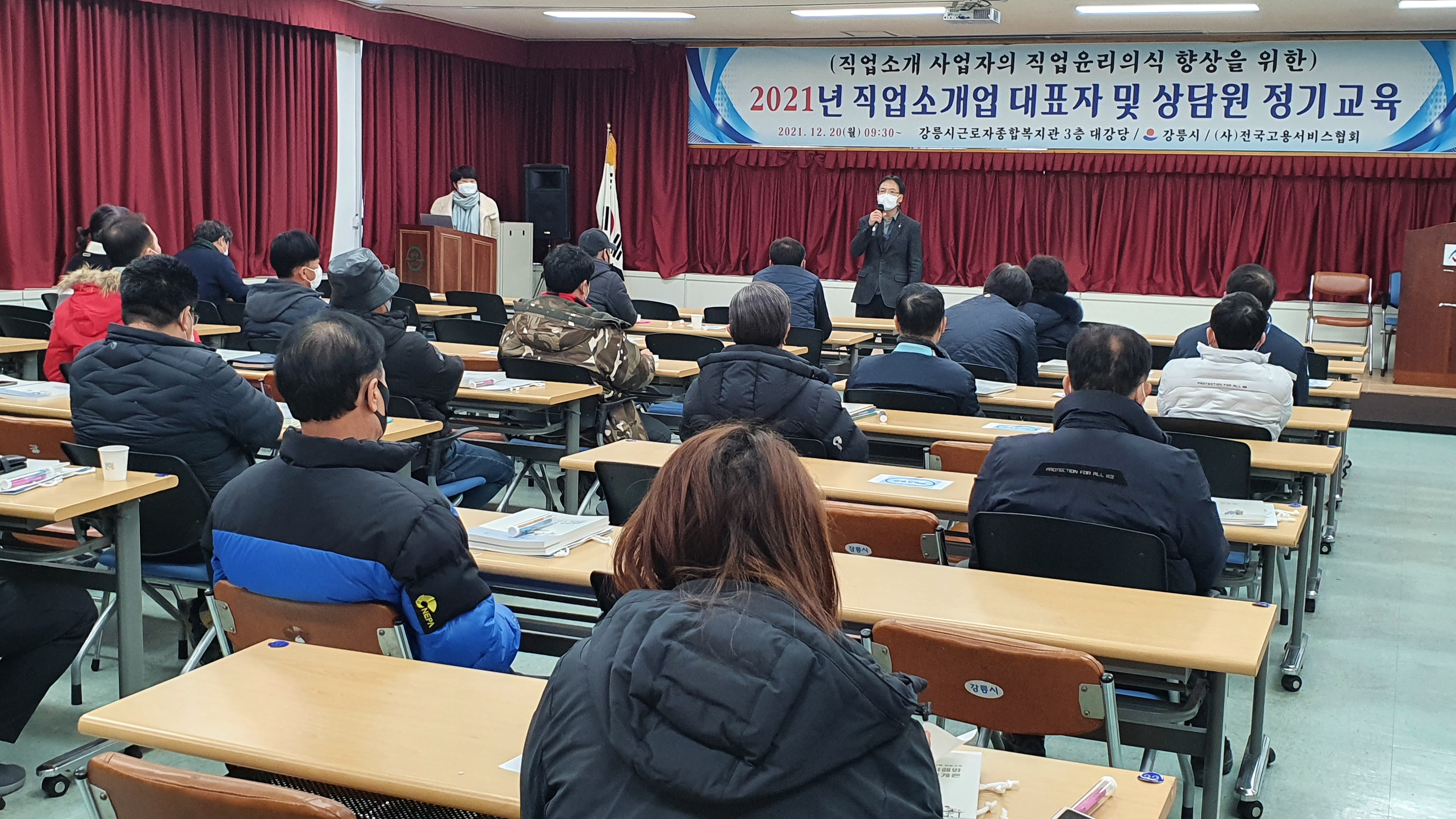 [강원사회복지신문 서은진 기자]=직업소개사업자의 직업윤리 향상을 통해 건전한 노동시장 조성 강릉시는 지난 12월 20일 근로자종합복지관에서 직업소개사업자와 종사자를 대상으로 직업소개 및 상담에 필요한 전문지식 및 직업윤리의식 향상을 주제로 한 '2021년 직업소개사업자 및 종사자 교육'을 실시했다. 전문강사를 초...