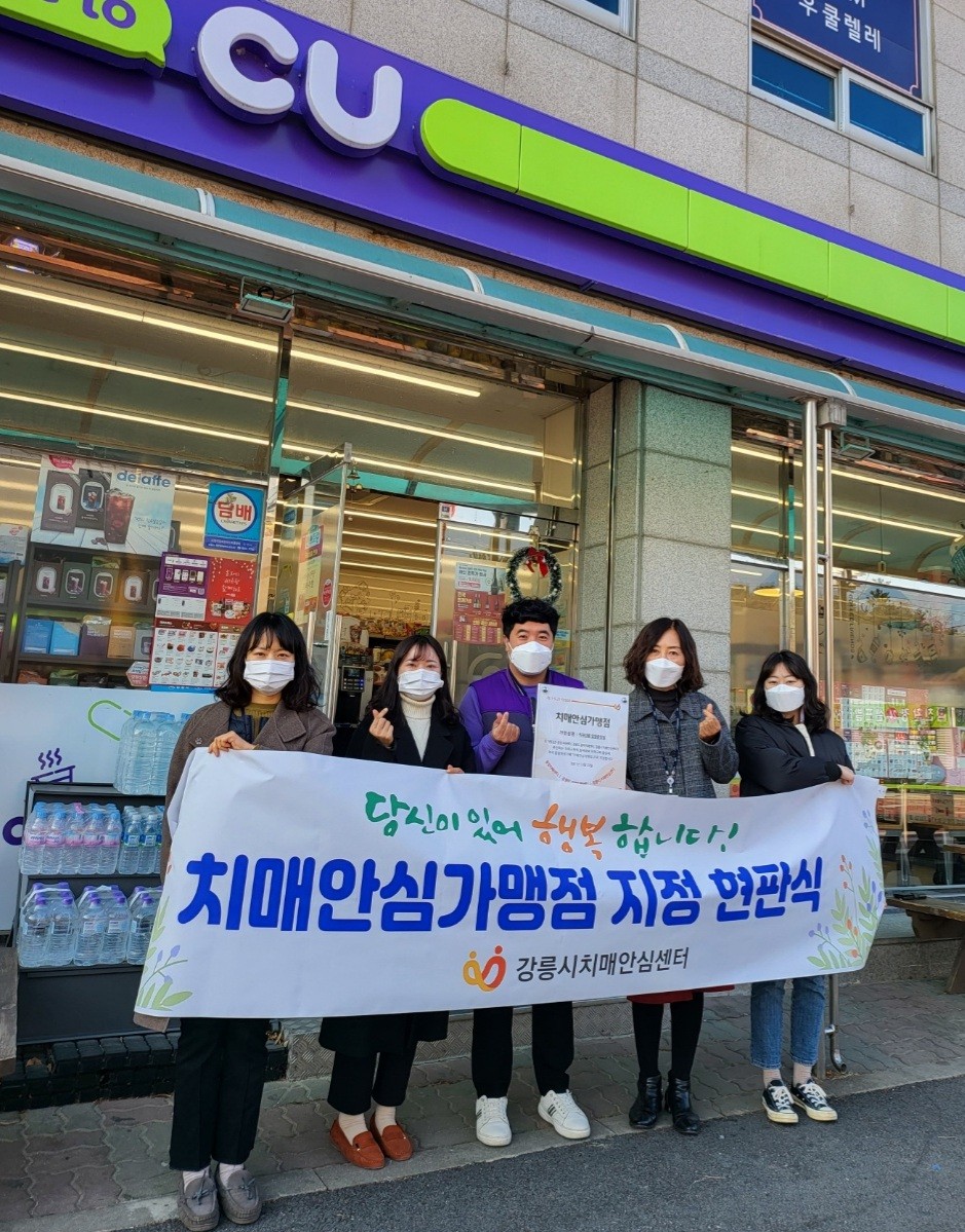 [강원사회복지신문 홍기한 기자]=강릉시치매안심센터는 지난 12월 22일(수) '씨유강릉 입암중앙점'을 치매안심가맹점으로 지정하고 현판식을 가졌다. 치매안심가맹점은 개인사업장 구성원들이 모두 치매파트너 교육을 받고 지역사회가 촘촘하게 치매안전망을 구축할 수 있도록 선도하는 사업장이다. 이번 제1호 치매안심가맹...