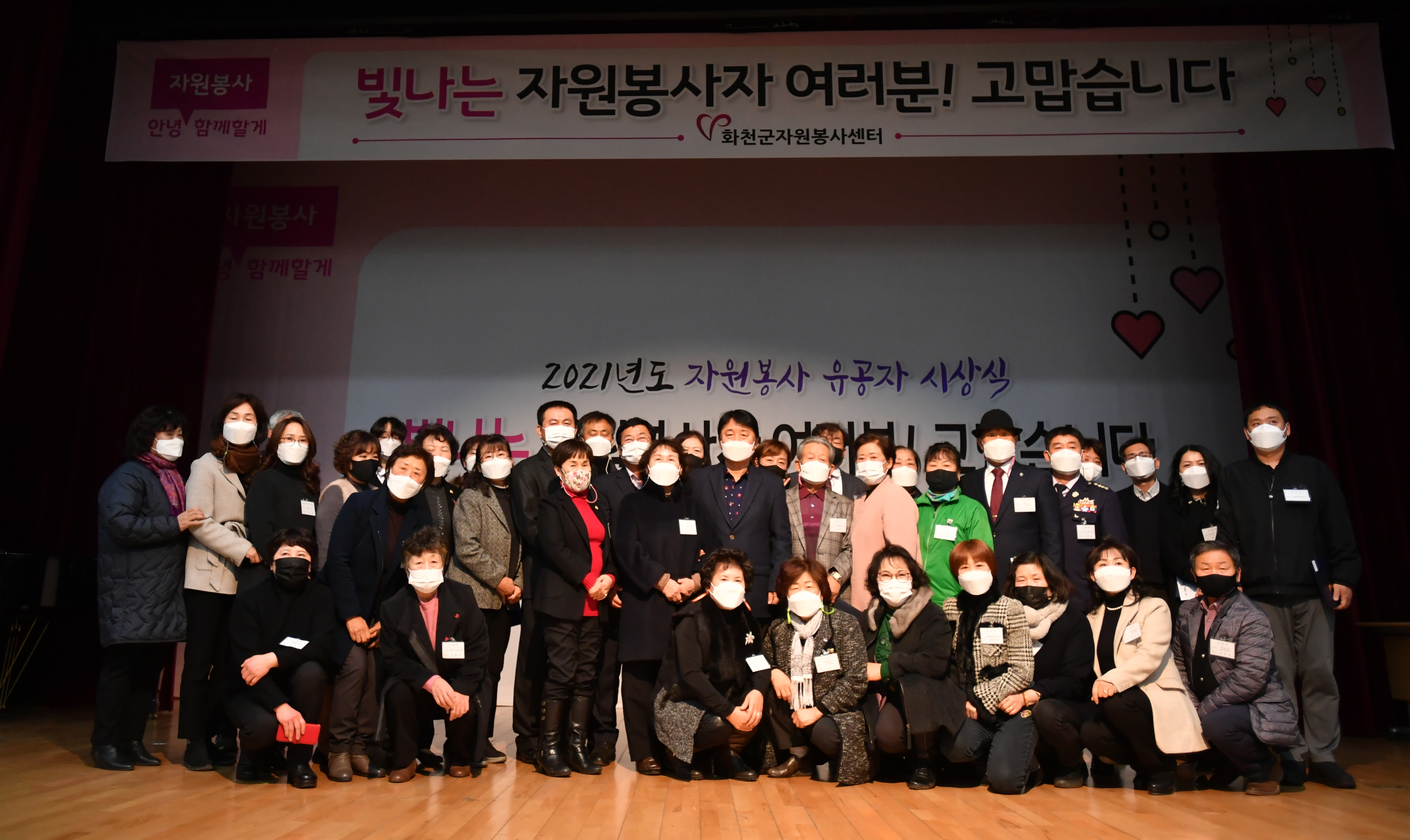 [강원사회복지신문 이정환 기자]=2021년 자원봉사 유공자 시상식이 지난 12월 21일 화천청소년수련관에서 최문순 군수, 길종수 군의장, 김영수 군자원봉사센터 소장을 비롯한 자원봉사자들이 참석한 가운데 열렸다.