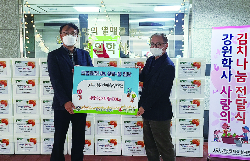 [강원사회복지신문 홍기한 기자]=도봉구 민간복지거점기관으로써 지역 취약계층 40여가구에 전달 강원인재육성재단(이사장 최문순)은 지난 12월 20일 오후 3시 강원학사(도봉)에서 이웃과 함께하는 학사운영 사업의 일환 및 도봉구 민간복지거점기관으로써 2021년 취약계층 주민을 대상으로 한 복지프로그램 공모사업 일환으...