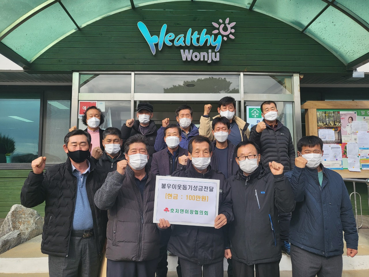 [강원사회복지신문 유경수 기자]=원주시 호저면 이장협의회(회장 최문수)는 지난 12월 10일 원주시 호저면 행정복지센터를 방문해 희망 2022 나눔 성금 100만 원을 전달했다.