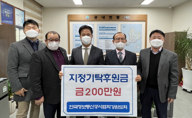 [강원사회복지신문 이정환 기자]=한국정보통신공사협회 강원도회(회장 안종관)는 지난 12월 14일 원주시 봉산동 행정복지센터(동장 강정원)에서 지정기탁 후원금 200만 원을 봉산동 지역사회보장협의체(민간위원장 김종득)에 전달했다.