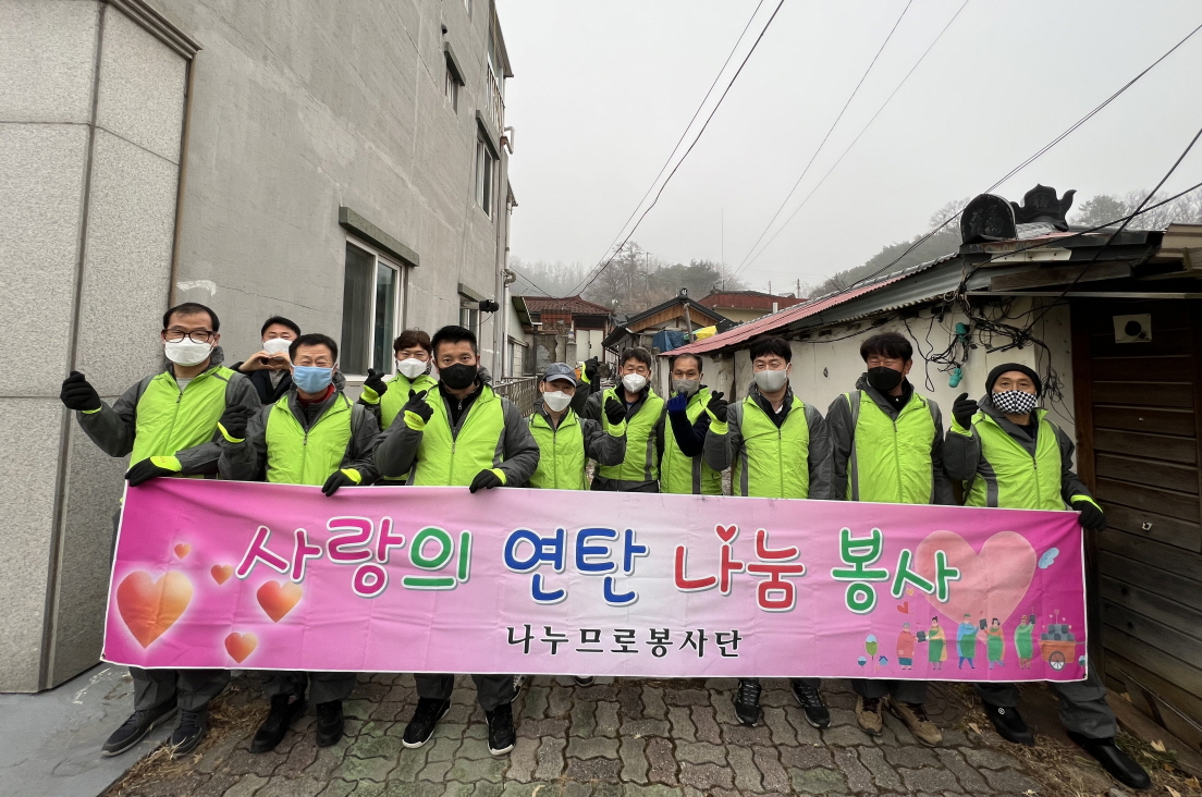 [강원사회복지신문 서은진 기자]=원주교육지원청 산하 기관 직원으로 구성된 나누므로 봉사단(단장 신익삼)은 지난 12월 11일 사랑의 연탄 나눔 봉사를 펼쳐 관내 취약계층 10가구에 연탄 총 2,000장을 전달했다.