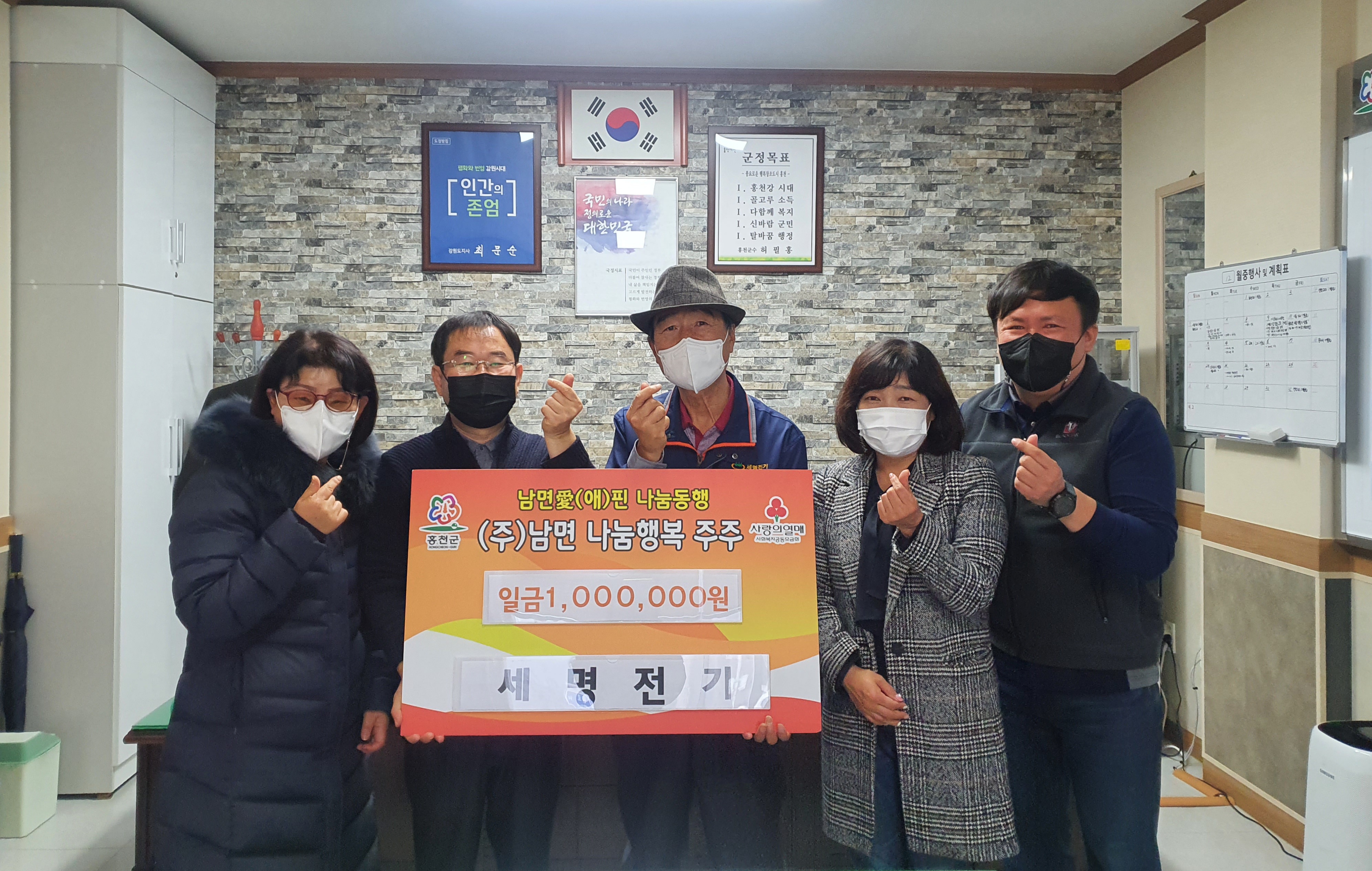 [강원사회복지신문 유경수 기자]=세명전기(대표 신대성)는 지난 12월 8일 홍천군 남면 행정복지센터를 방문, 어려운 이웃돕기 성금 100만원을 기탁했다. 신대성 대표는 "남면에서 가로등과 같은 전기 관련 사업을 하고 있어 남면 주민에게 조금이나마 도움을 주고 싶다는 생각을 늘 갖고 있었다”며 “비로소 오늘 실천에 옮...
