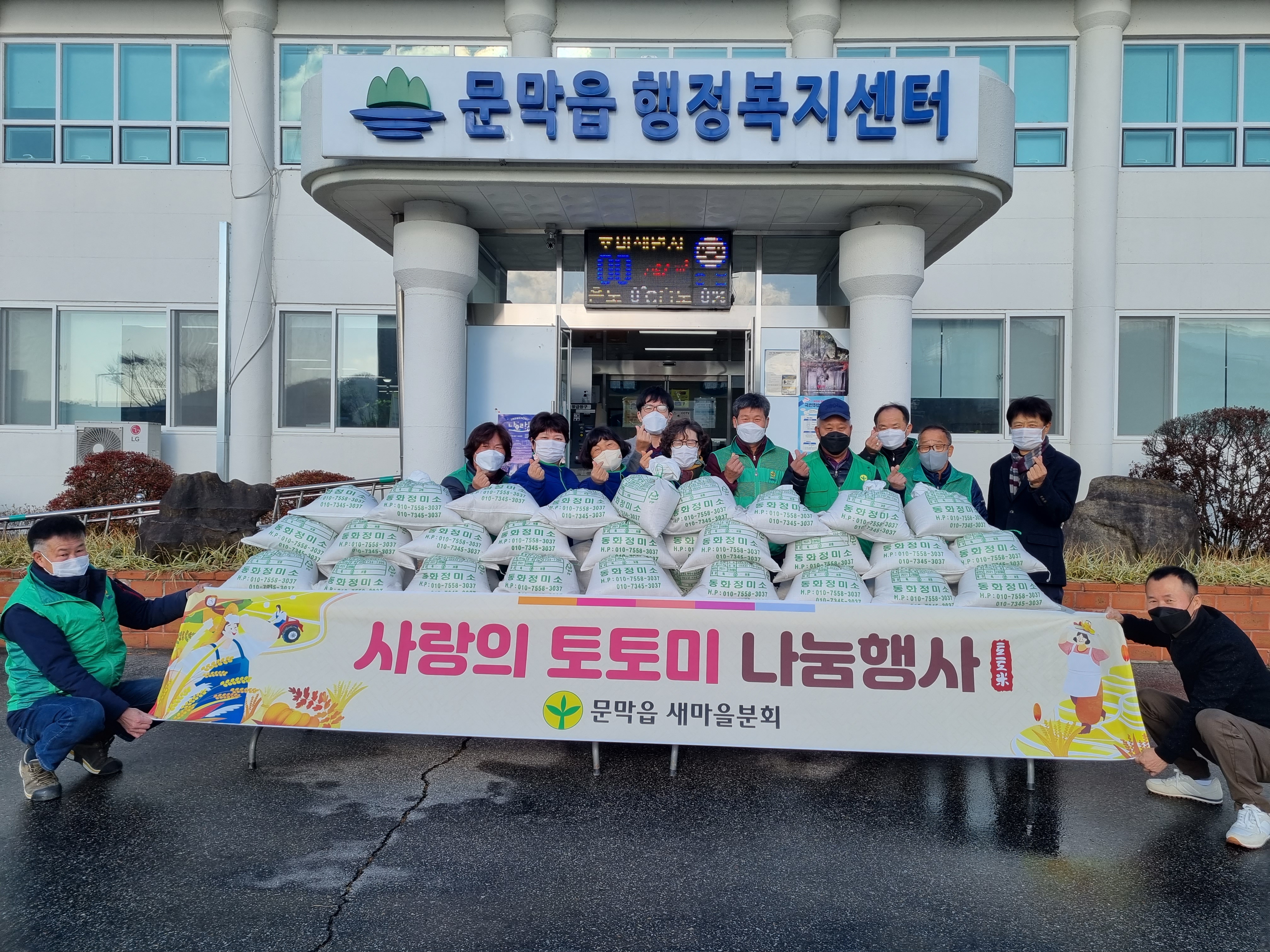 [강원사회복지신문 서은진 기자]=원주시 문막읍 새마을분회(회장 전근표·김옥화)는 지난 12월 3일 어려운 이웃을 위한 사랑의 쌀 나눔 행사를 열고 백미(10㎏) 40포를 문막읍 행정복지센터에 전달했다.