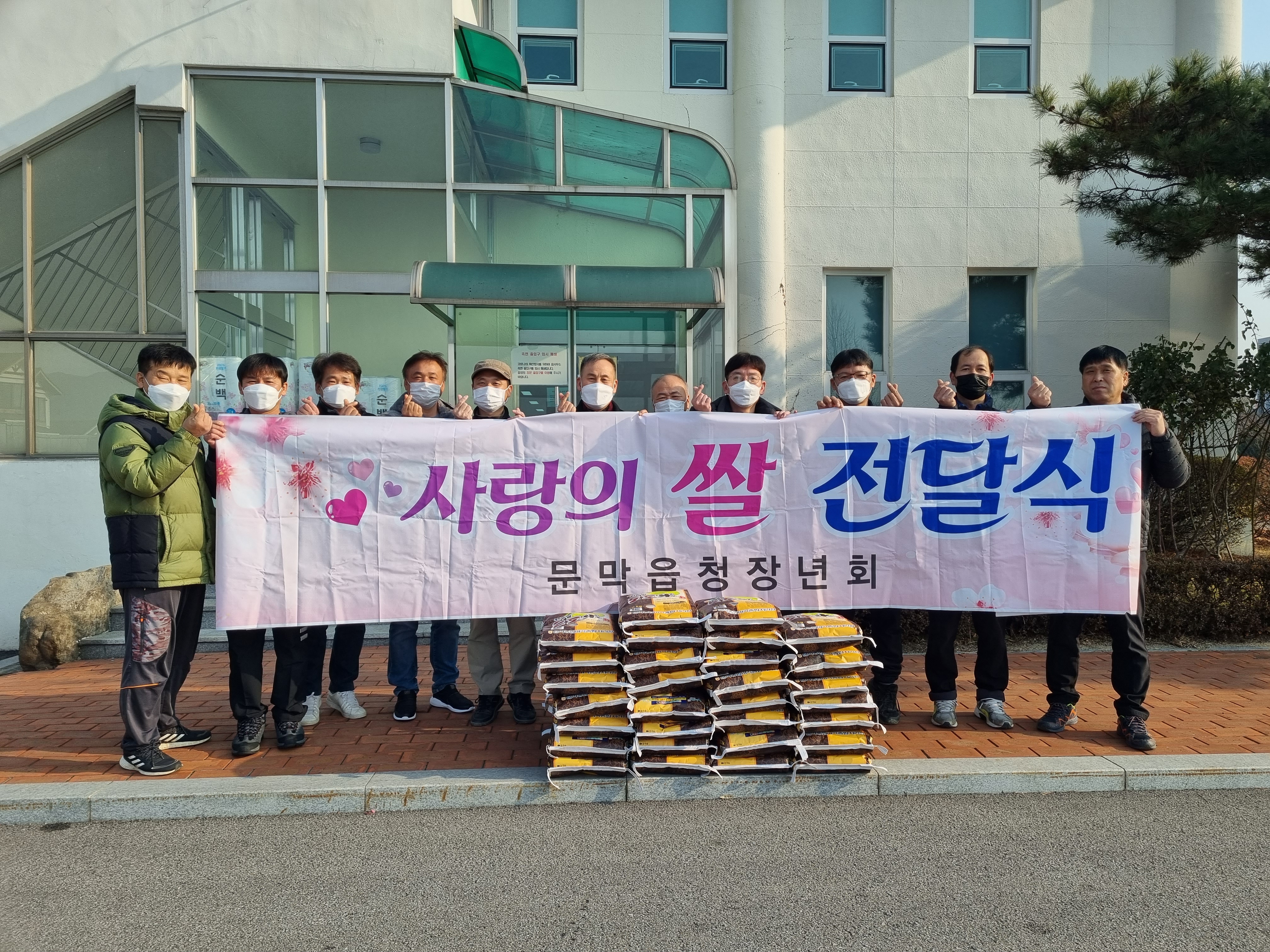 [강원사회복지신문 서은진 기자]=원주시 문막읍 청장년회(회장 안재홍)는 지난 12월 7일 지역의 어려운 이웃을 위해 백미(10㎏) 30포를 문막읍 행정복지센터에 전달했다. 26명의 회원으로 구성된 문막읍 청장년회는 경로잔치 봉사 및 저소득층을 위한 쌀·연탄 후원 등 이웃사랑을 꾸준히 실천하고 있다.