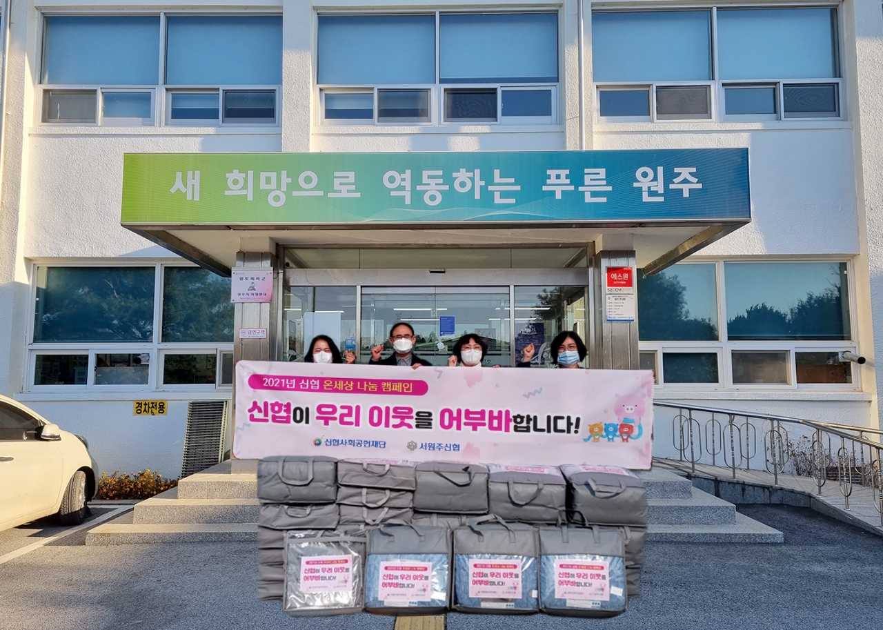[강원사회복지신문 서은진 기자]=서원주신협(이사장 김문기)은 지난 11월 25일 원주시 지정면 취약계층의 따뜻한 겨울나기를 위해 전기요 13개와 이불 13개를 지정면 행정복지센터에 전달했다.