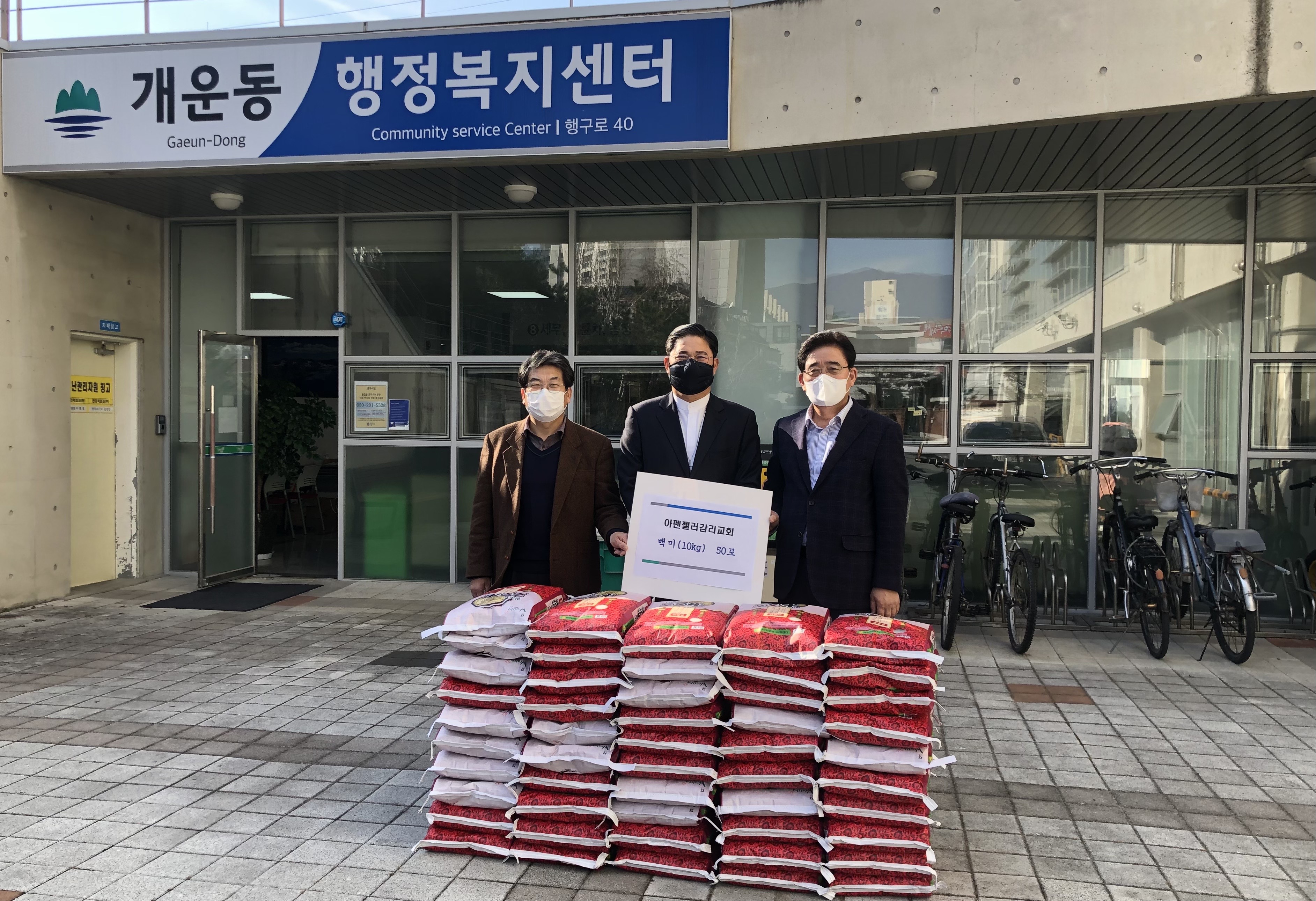 [강원사회복지신문 유경수 기자]=아펜젤러교회(담임목사 차용희)는 지난 11월 29일 지역 취약계층의 따뜻한 겨울나기를 위해 백미(10kg) 50포를 원주시 개운동 행정복지센터에 전달했다.