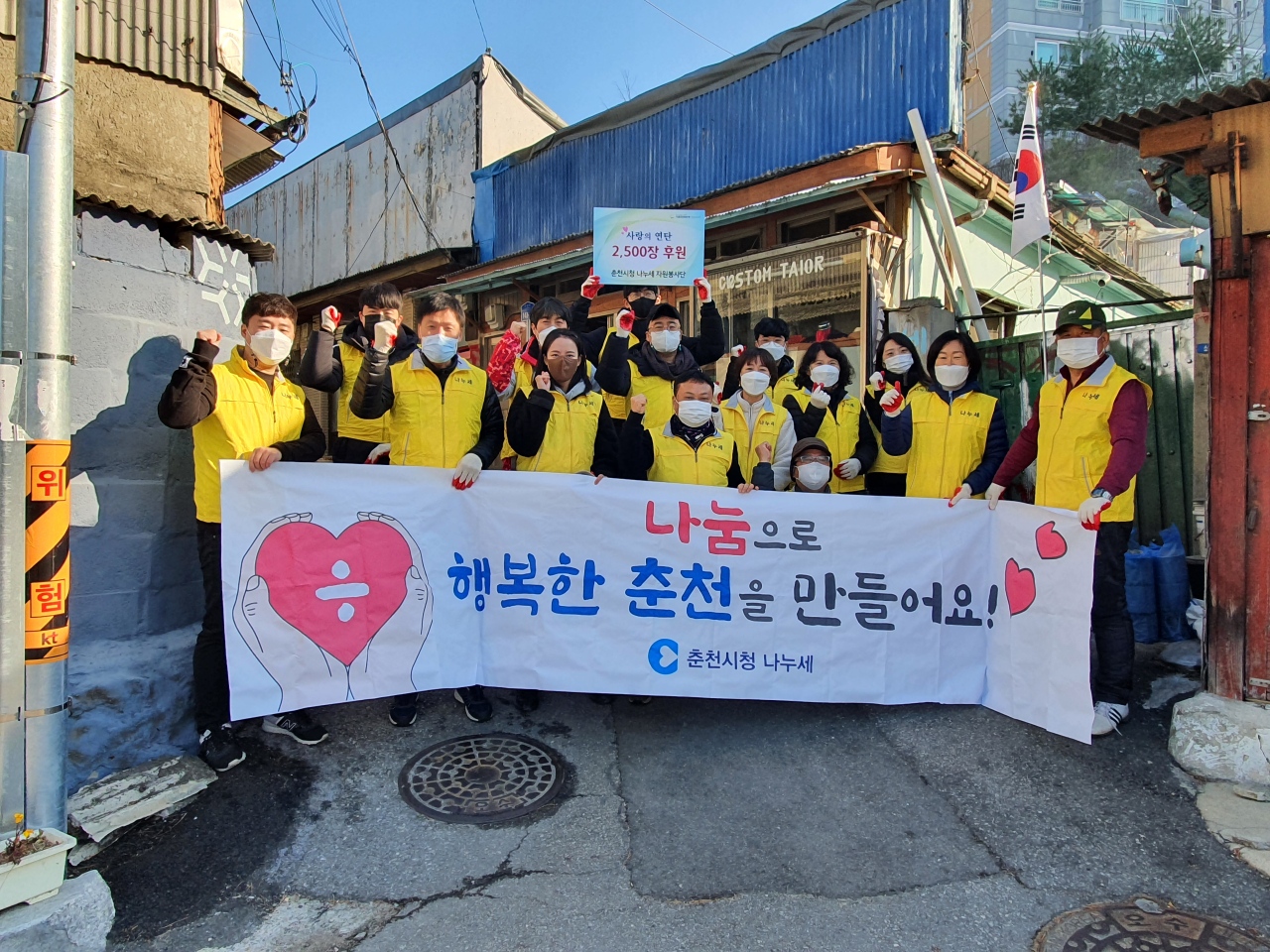 [강원사회복지신문 홍기한 기자]=춘천시청 '나누세' 자원봉사 동호회(회장:유재용)는 지난 11월 27일 춘천연탄은행에 연탄 2,500장(200만원 상당)을 기증하고 이중 1,000장을 서부시장 인근 5개 가정에 직접 전달했다.