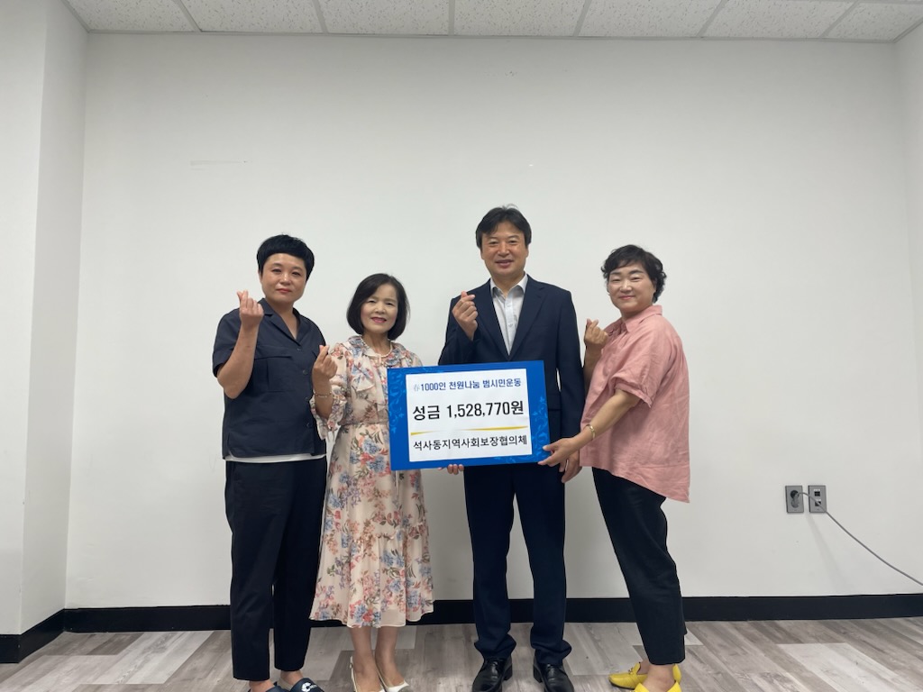 [강원사회복지신문 서은진 기자]=춘천시 석사동지역사회보장협의체(위원장 최형화)는 지난 7월 19일 '아나바다 행복장터'를 통해 얻은 수익금 전액(150만원)을 석사동행정복지센터(동장 박성숙)를 방문해 전달했다.