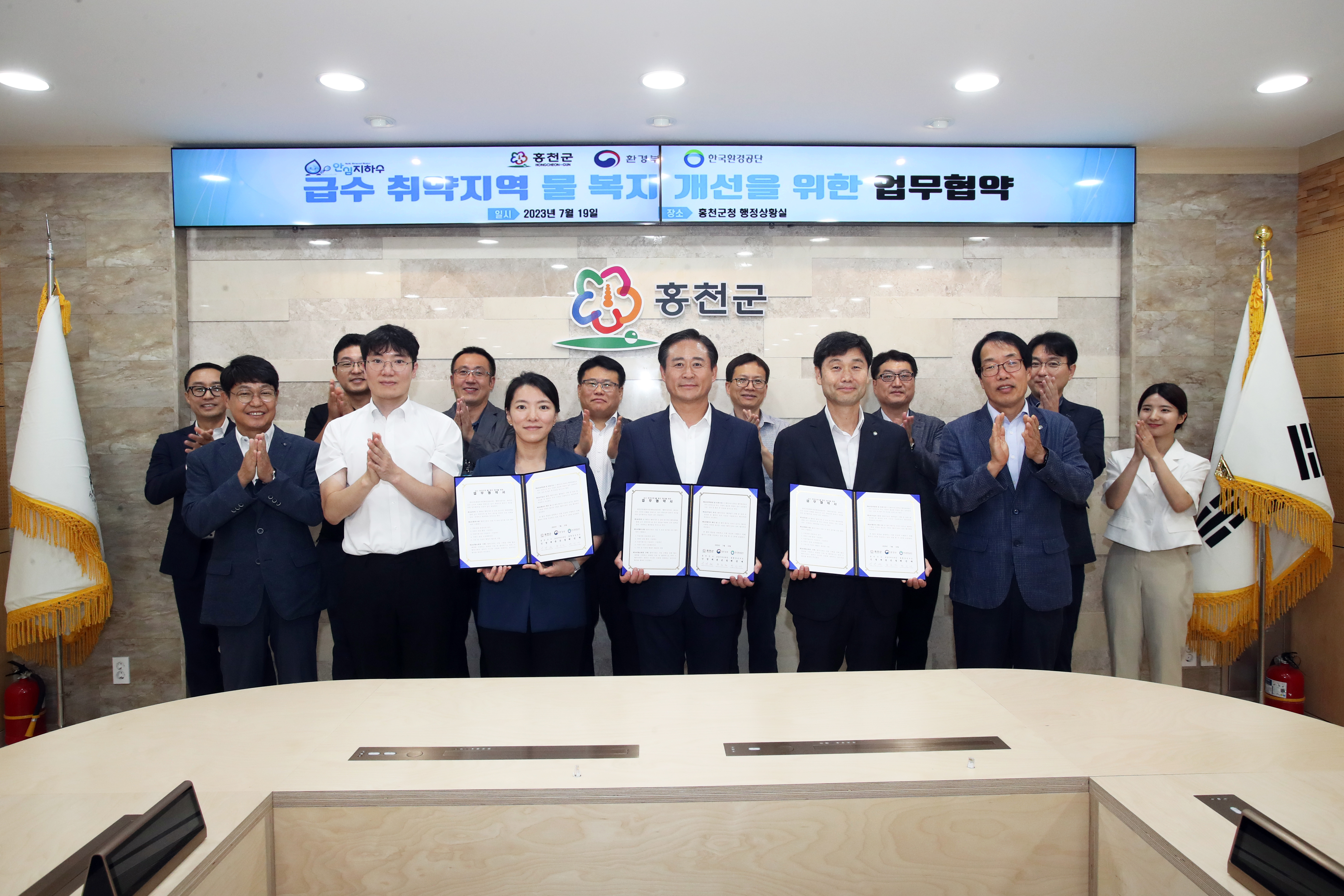 [강원사회복지신문 서은진 기자]=물 복지 개선을 위한업무협약 체결 홍천군은 지난 7월 19일 오후 2시 군청 행정상황실에서 환경부, 한국환경공단과 '급수 취약지역 물 복지 개선을 위한 지하수 지원 업무협약'을 체결했다고 밝혔다. 이번 협약은 상수도 미 보급 지역과 같은 급수 취약지역에 마을공용 음용관정 설치 및 개인...