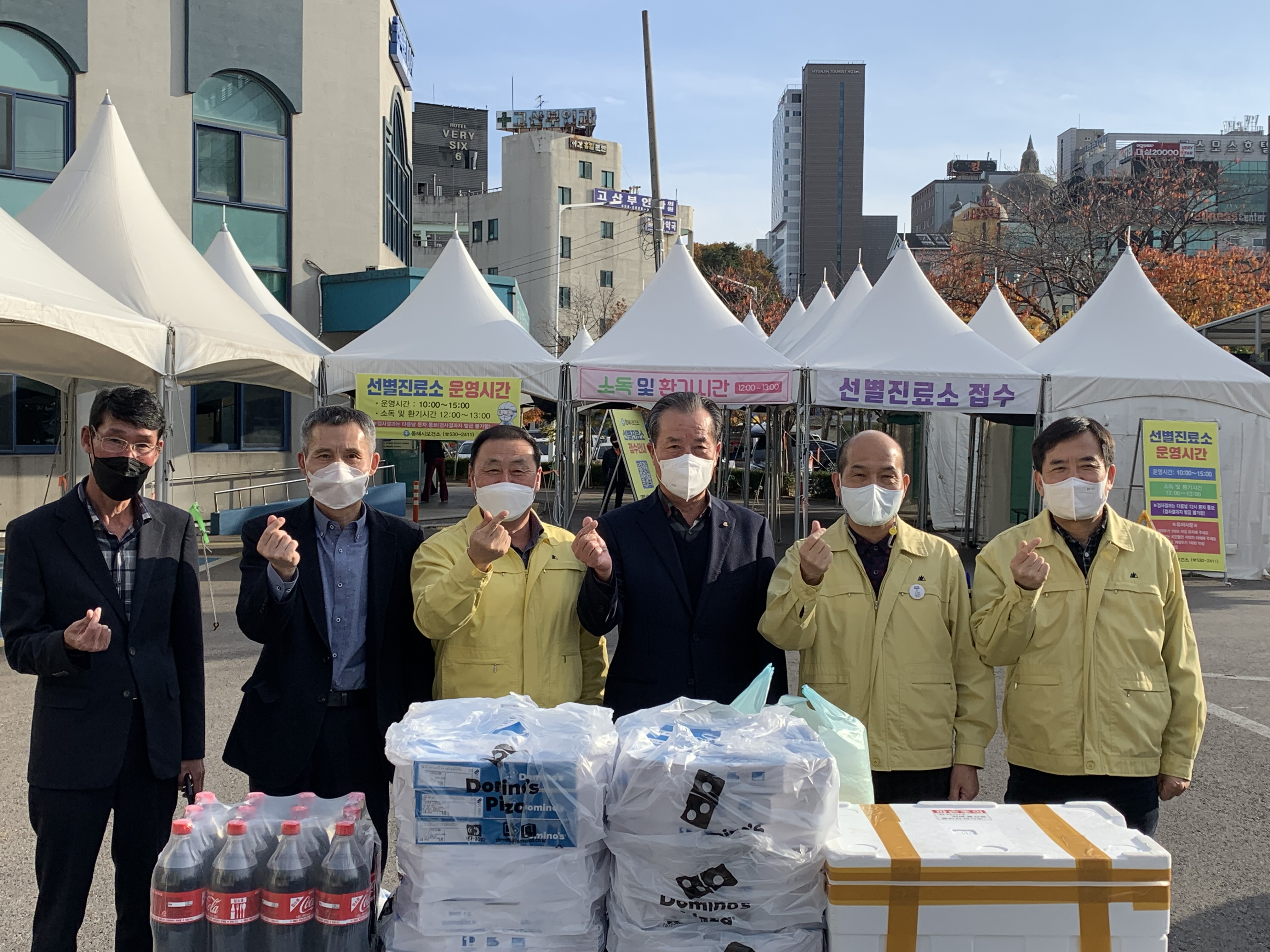 [강원사회복지신문 김종한 기자]=동해시체육회(회장 김윤재)는 코로나19 장기화로 몸과 마음이 지친 방역 관계자들을 격려하기 위해 지난 11월 15일 동해시 보건소를 방문해 격려품을 전달했다. 이날 체육회는 100만원 상당의 닭강정 및 피자를 준비해 시민들의 건강과 안전을 위해 방역 최일선에서 묵묵히 최선을 다하고 있...