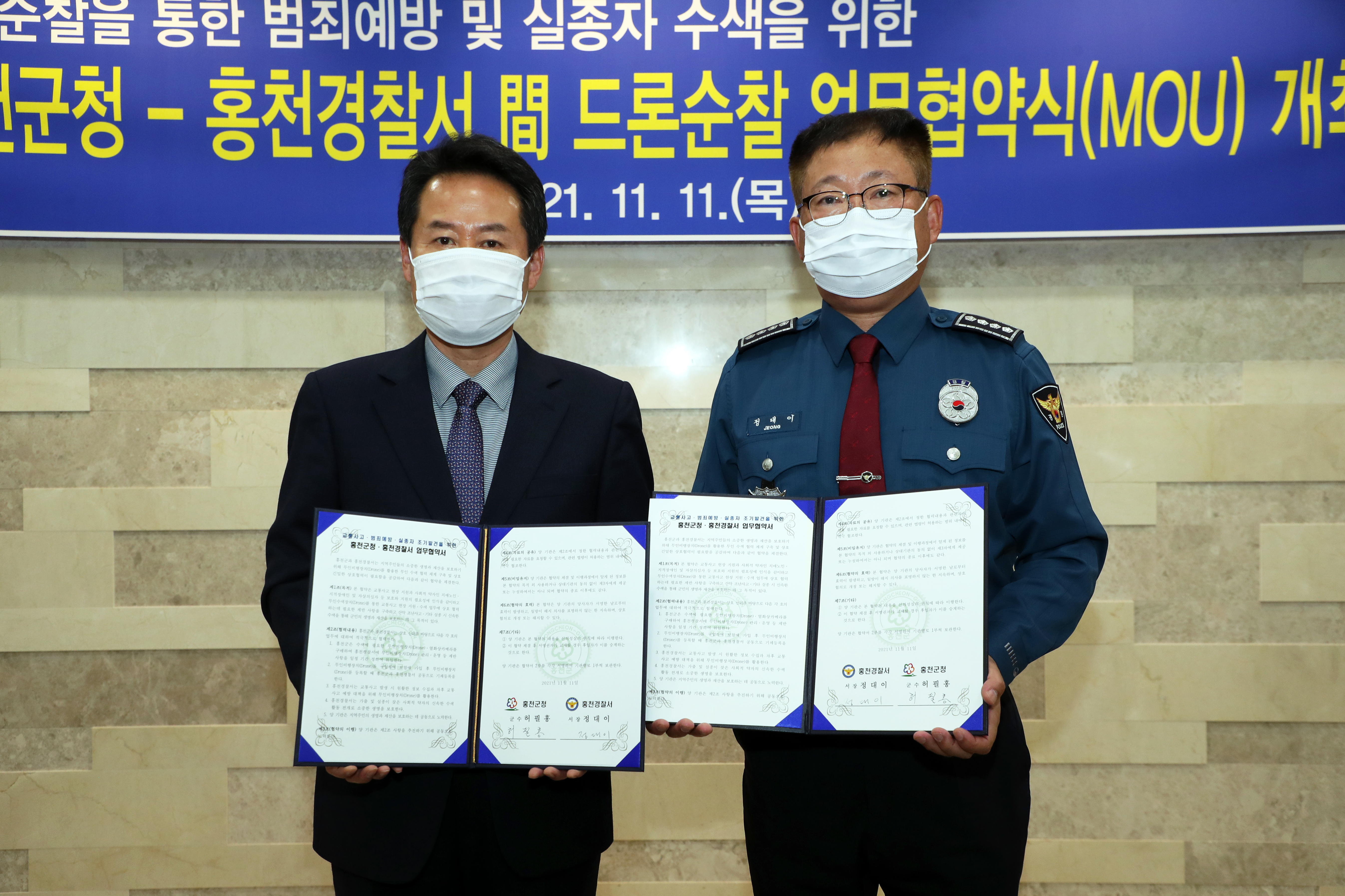 [강원사회복지신문 유경수 기자]=도내 최초로 실종자 수색, 교통사고 현장 지원, 범죄예방 등에 드론 활용 최신 열화상카메라 장착된 드론 운영, 실종자 수색에 유용하게 활용 홍천군이 강원도 최초로 경찰과 드론을 활용한 범죄예방 및 실종자 수색을 위한 업무협약을 체결했다. 허필홍 홍천군수는 11월 11일 홍천군청 행정...