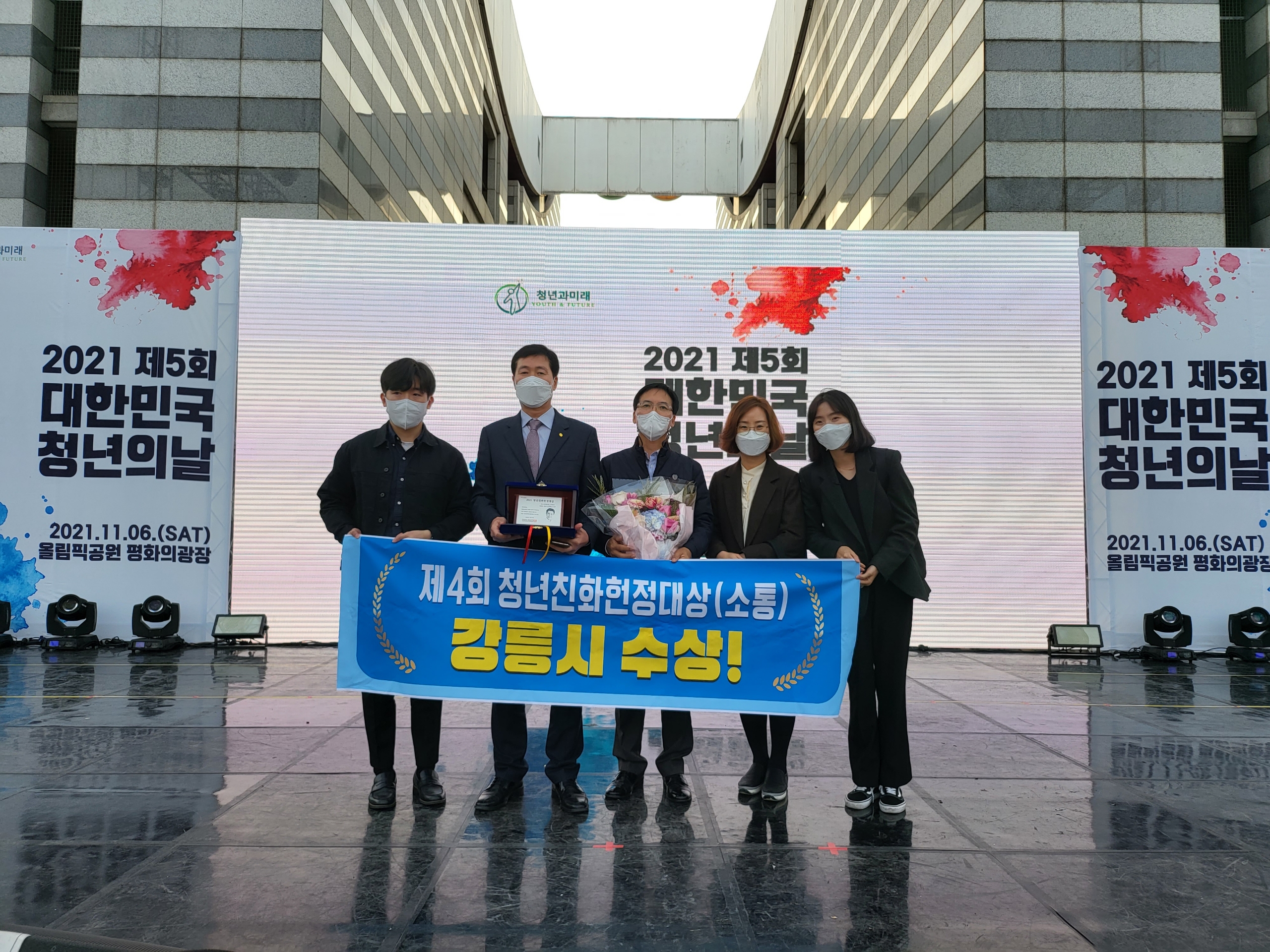 [강원사회복지신문 서은진 기자]=강릉시(시장 김한근)는 '2021 청년친화헌정대상' 우수기초자치단체로 소통대상 부문을 수상했다. 국회사무처 소관 사단법인 청년과미래에서 주관하고 대학교수와 CEO, 변호사, 언론인 등 전문가와 청년선정위원 100여 명으로 구성된 선정위원회에서 청년친화지수를 기준으로 청년친화적 환경...