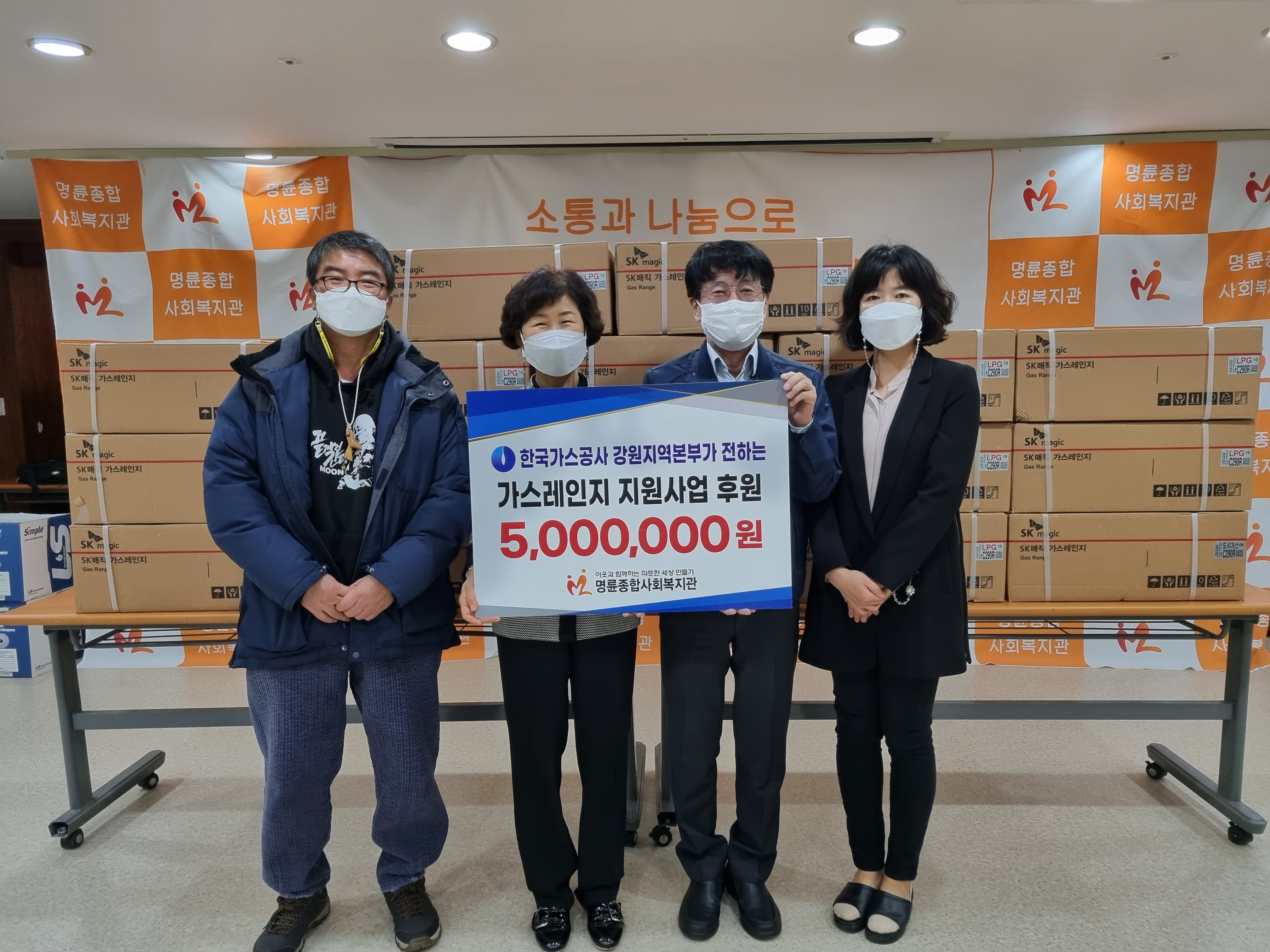 [강원사회복지신문 홍기한 기자]=2021 한국가스공사 강원지역본부(본부장 양동훈)는 지난 11월 3일 명륜종합사회복지관(관장 박현숙)에 후원금 500만원을 전달하여, 저소득 27가정에 가스레인지를 지원하였다. 가스레인지가 노후되었으나 경제적 어려움으로 교체를 하지 못해 화재위험과 음식조리에 어려움이 있는 에너지빈곤...